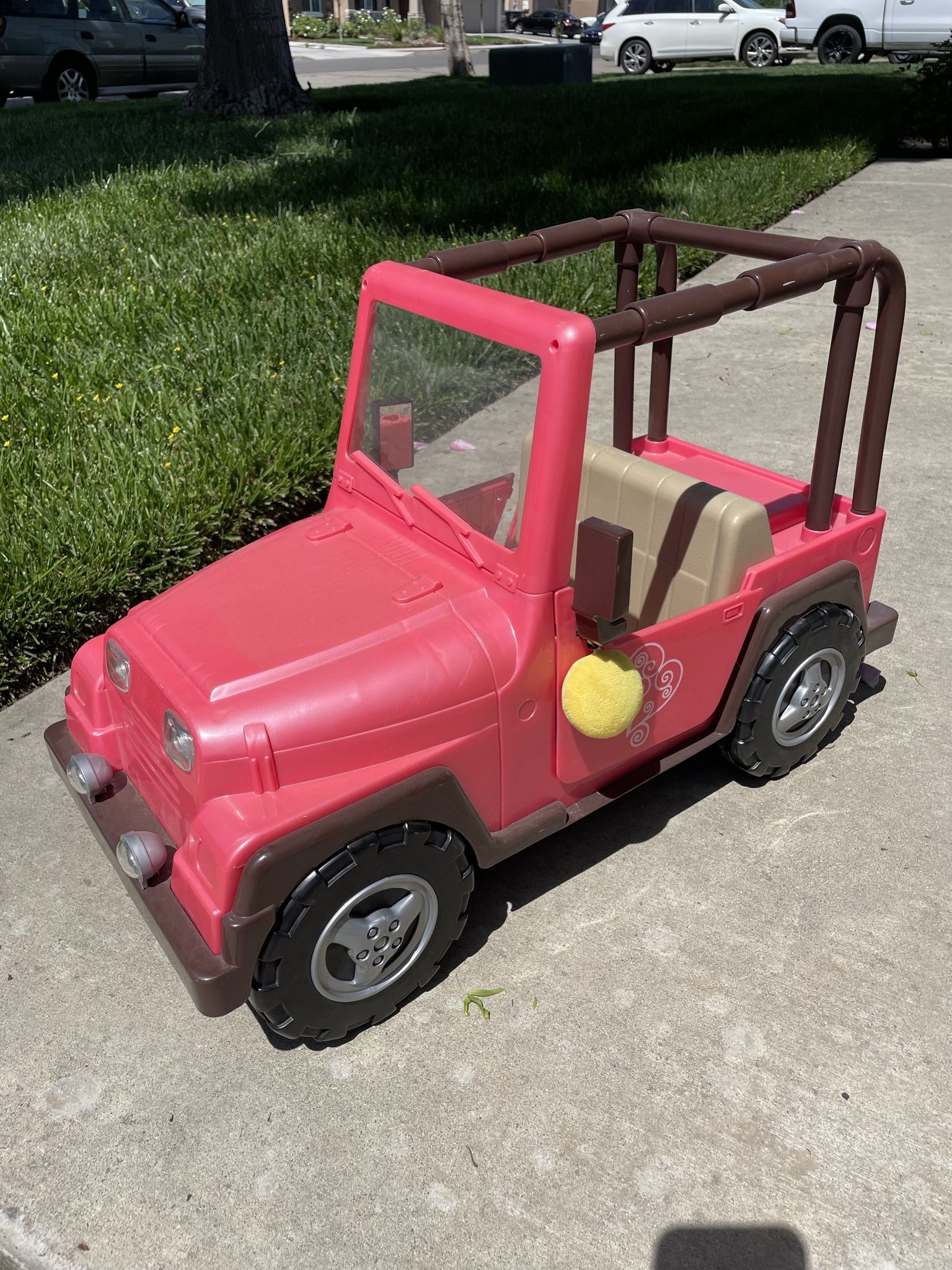 Great condition. Fits American Girl sized dolls. 2 feet in length. 1&1/2 feet height. Not meant for a child to ride in. DOLL NOT INCLUDED
