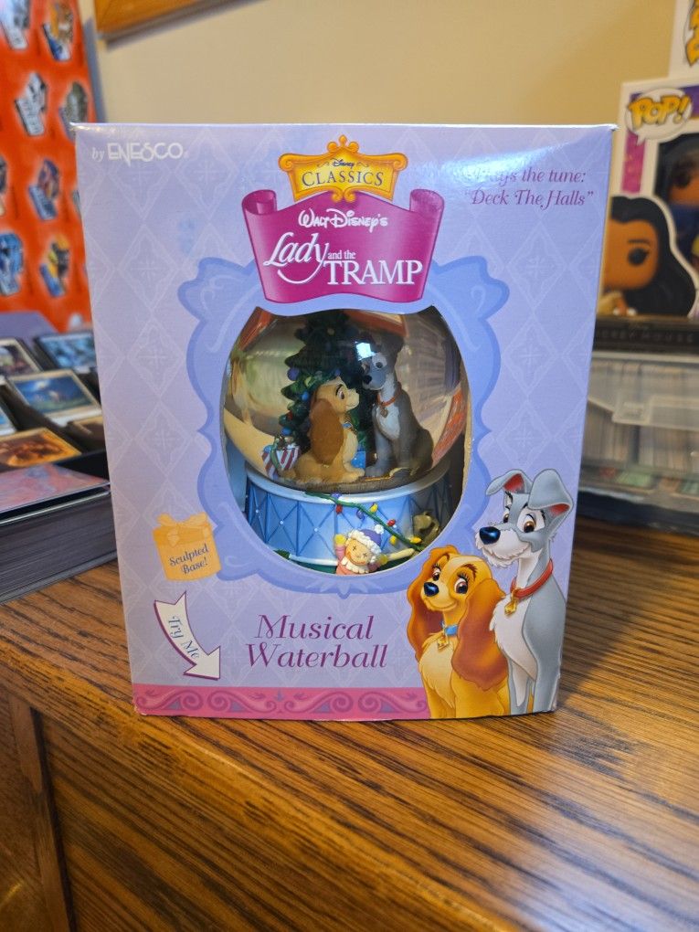 2 snowglobes for sale, perfect christmas gift for any disney fan! Both globes still work musically. They have been stored in boxes in smoke free homes Lady and the tramp gathered around the Christmas tree with their pups Pinocchio and jiminy also celebrate by the Christmas tree