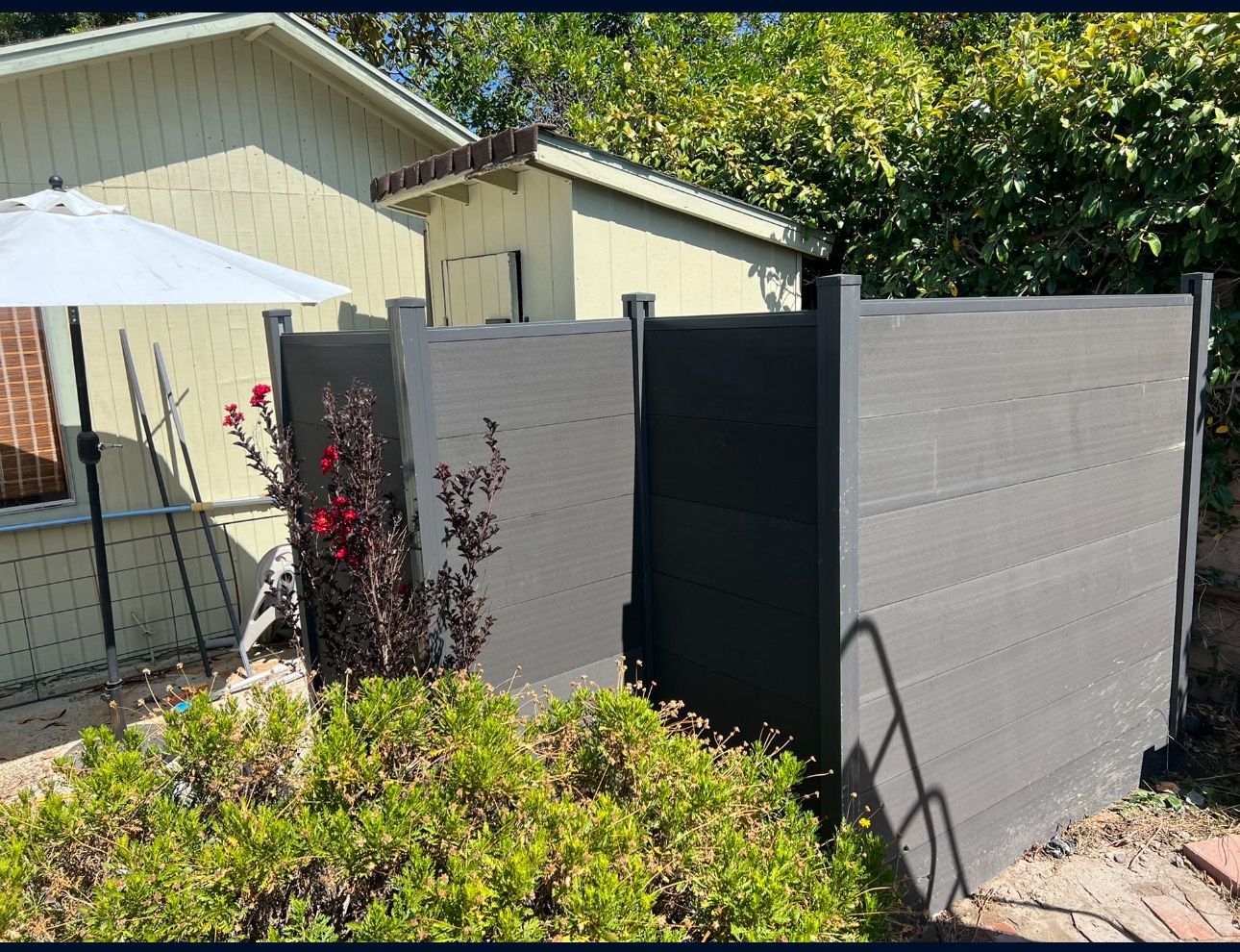 Pool pump fence. Durable noise reduction. Made of aluminum and wpc. Maintenance