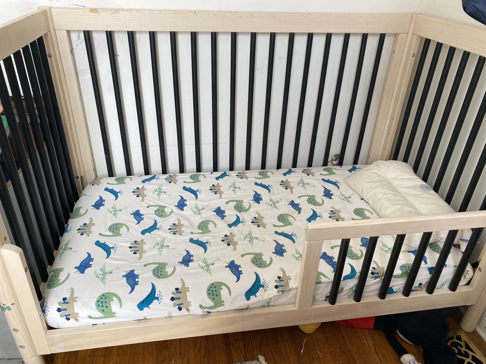 Free toddler bed mattress and another rail if you want to convert to a crib