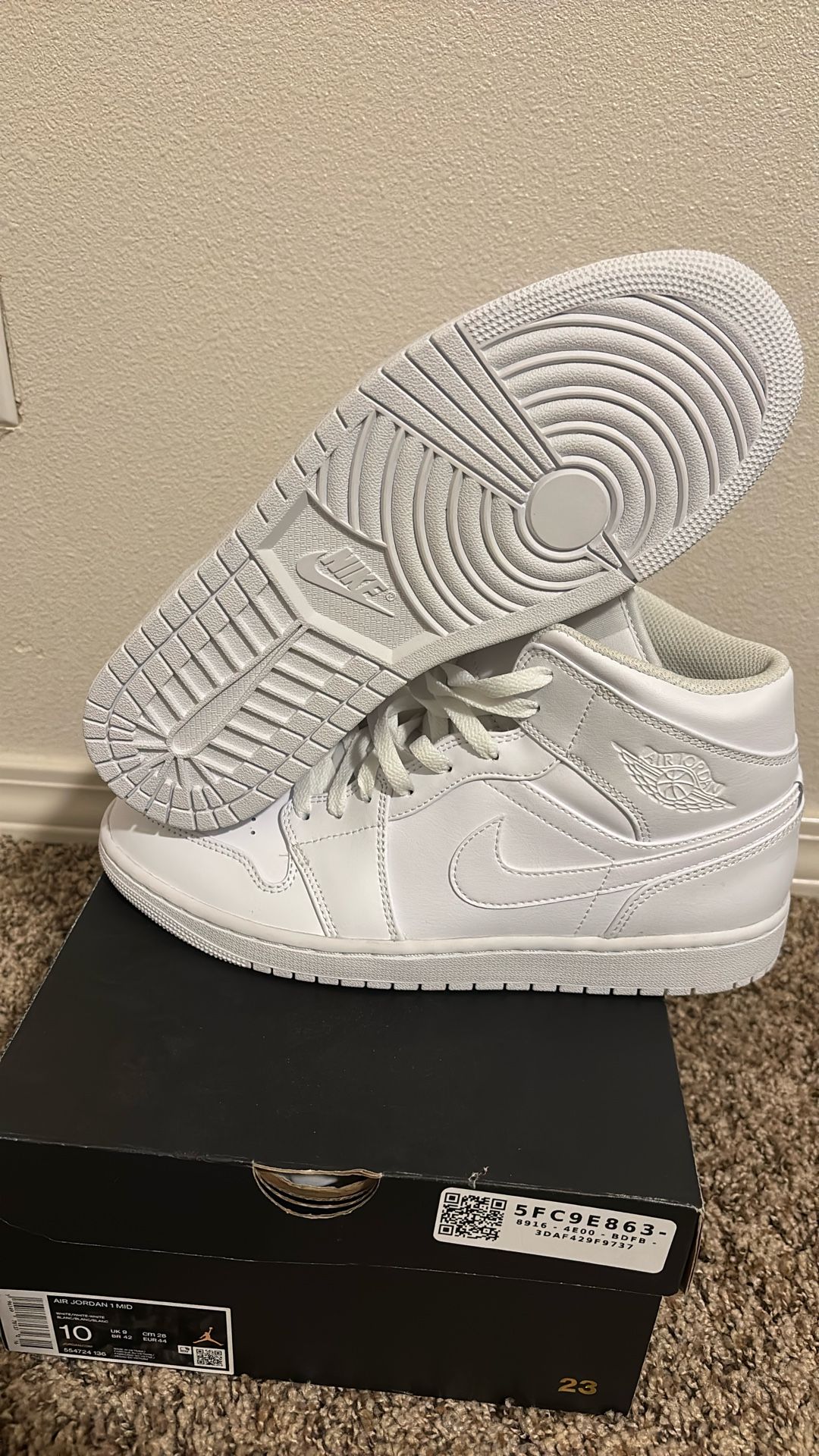 Brand New In The Box Air Jordan 1 Mid Triple White Mens Size 10