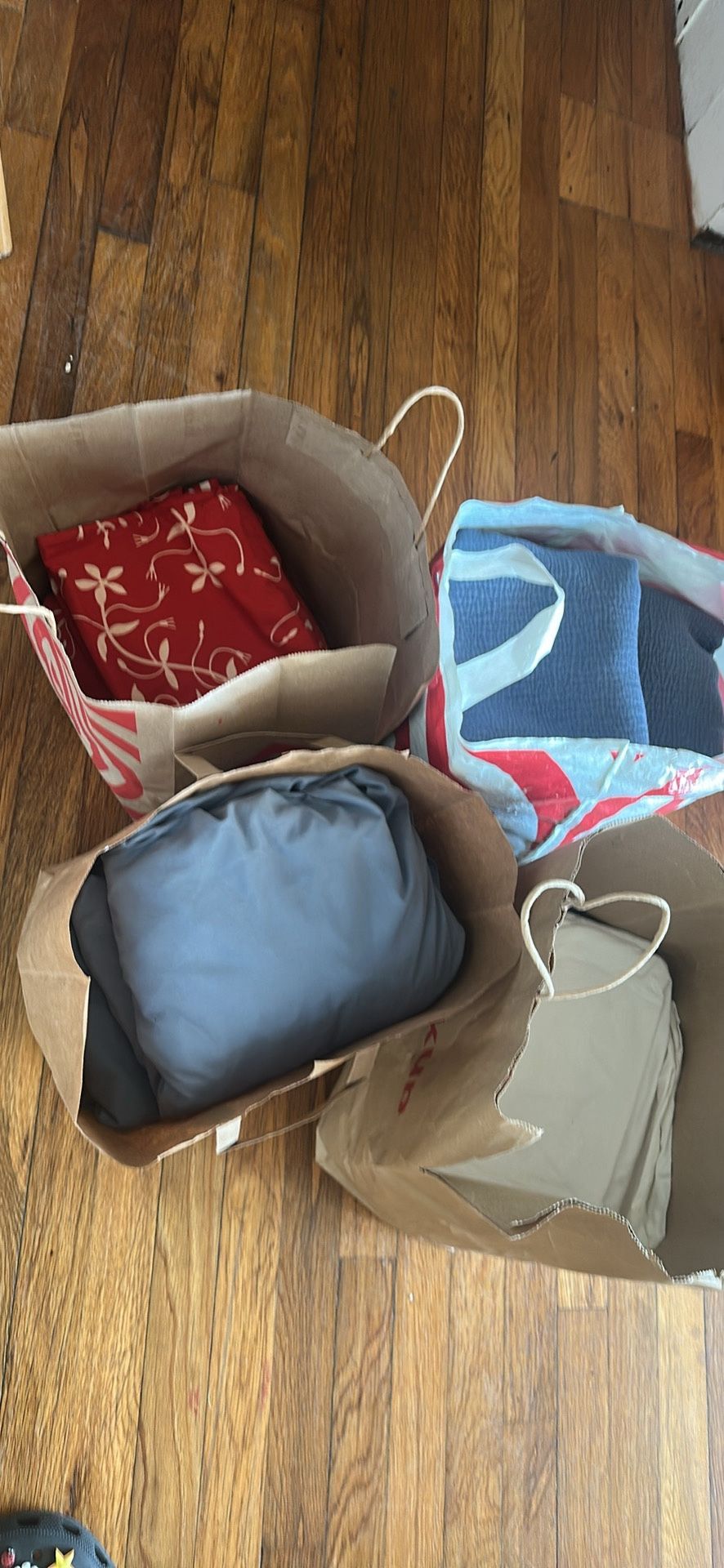 2 duvet covers, 4 jumbo pillow covers (2 navy blue, 2 red design. about 4 sets of sheets, two navy blue, two white and light blue mismatch