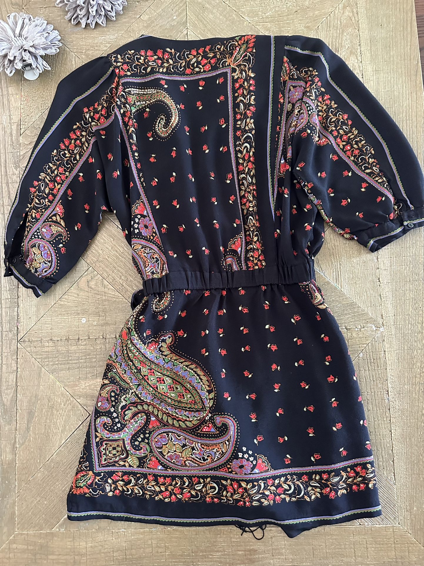Zara Black multi-color Floral & Paisley Print with Tasseled Accent Dress