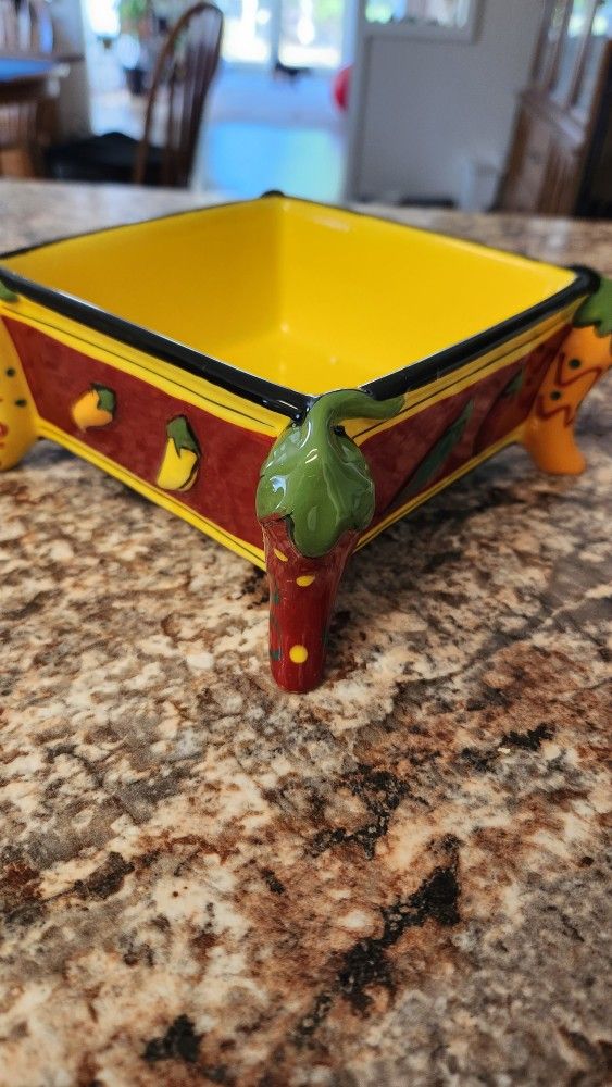 Hand painted ceramic dish. Oven safe up to 350°. Microwave & dishwasher safe. Brand new never used.