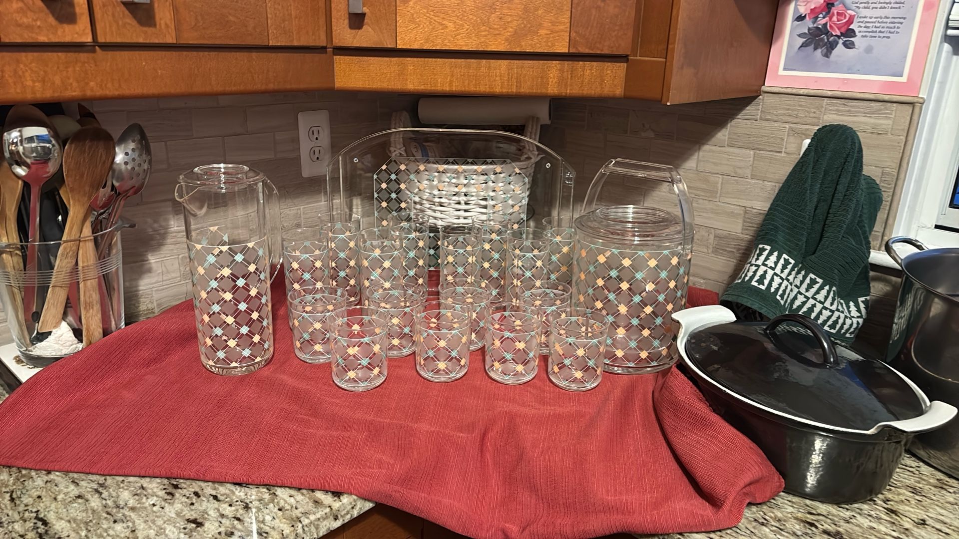 This beautiful set Culvers includes 8 tall and 8 short ones plus the tray water, pitcher pick up and ice bucket all in great condition all for $40