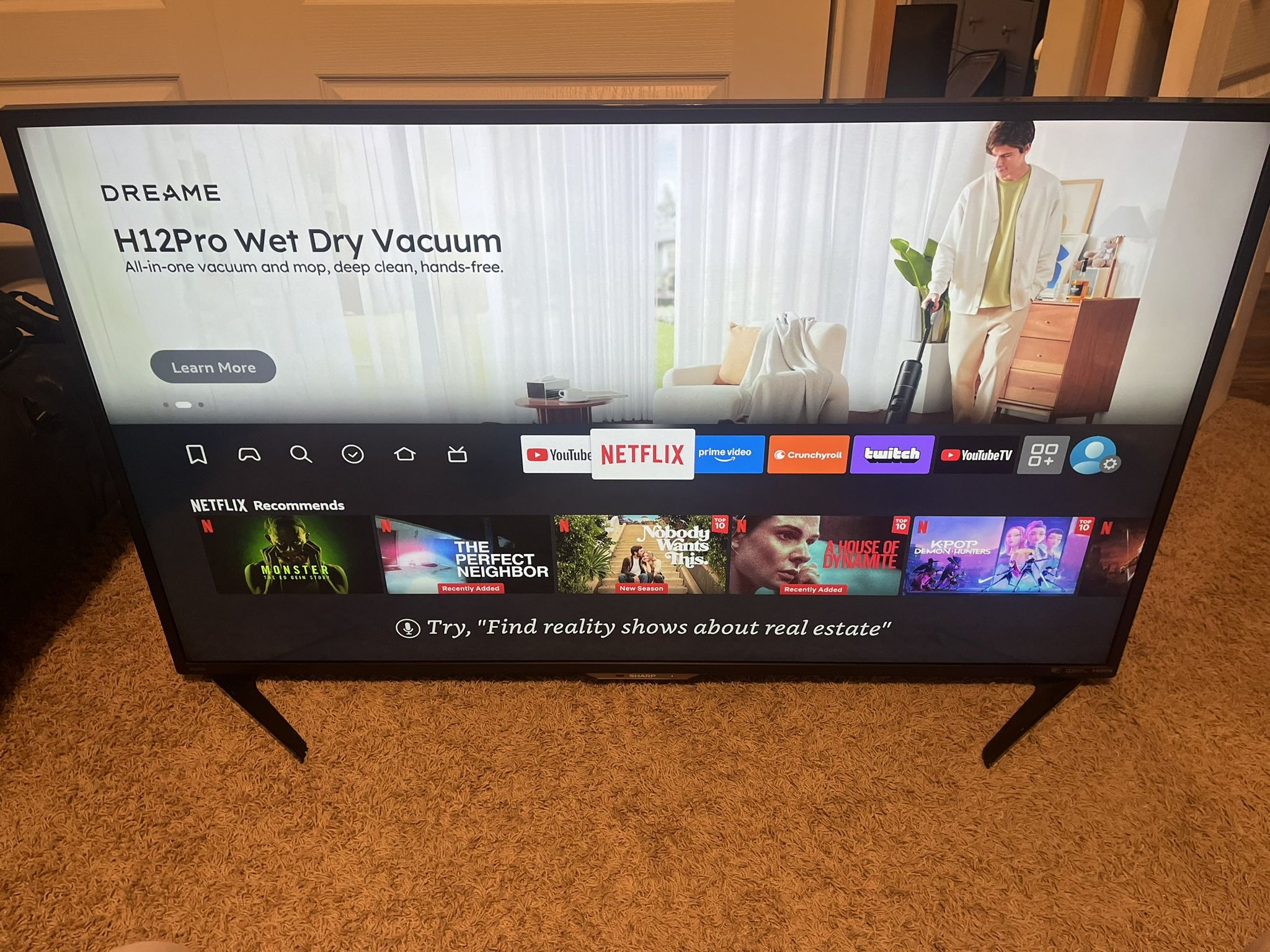 55 Inch Flat Screen TV Smart TV No scratches or any blemishes on screen Including 2 HDMI Cords and a 6-outlet Power connector Have Manual and Original Remote Works well with Amazon Fire Stick Ask for more details