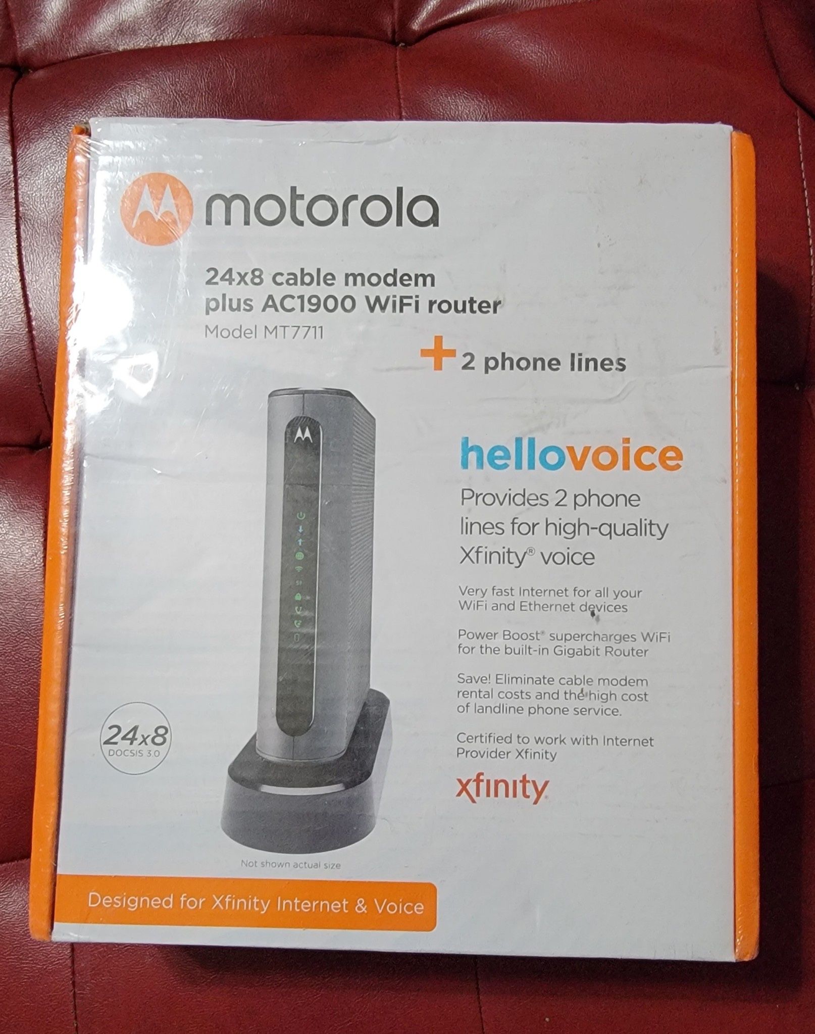 Brand new in the box Motorola 24x8 cable modem plus AC1900 WiFi router