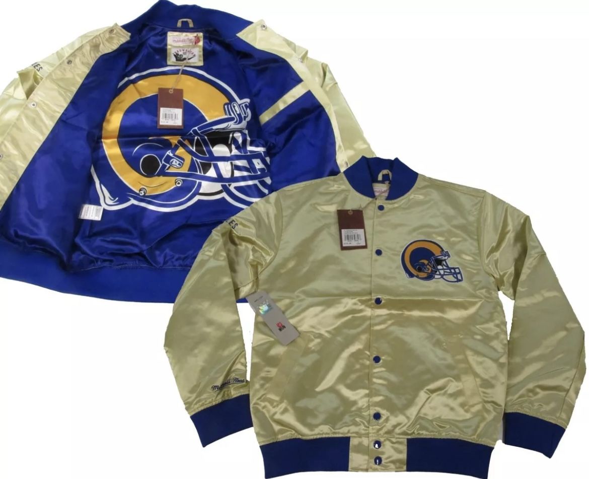 New Los Angeles LA Rams Mens Reversible NFL Mitchell & Ness Light Weight Satin Gold & Blue Medium Retro Throwback Button Up Jacket