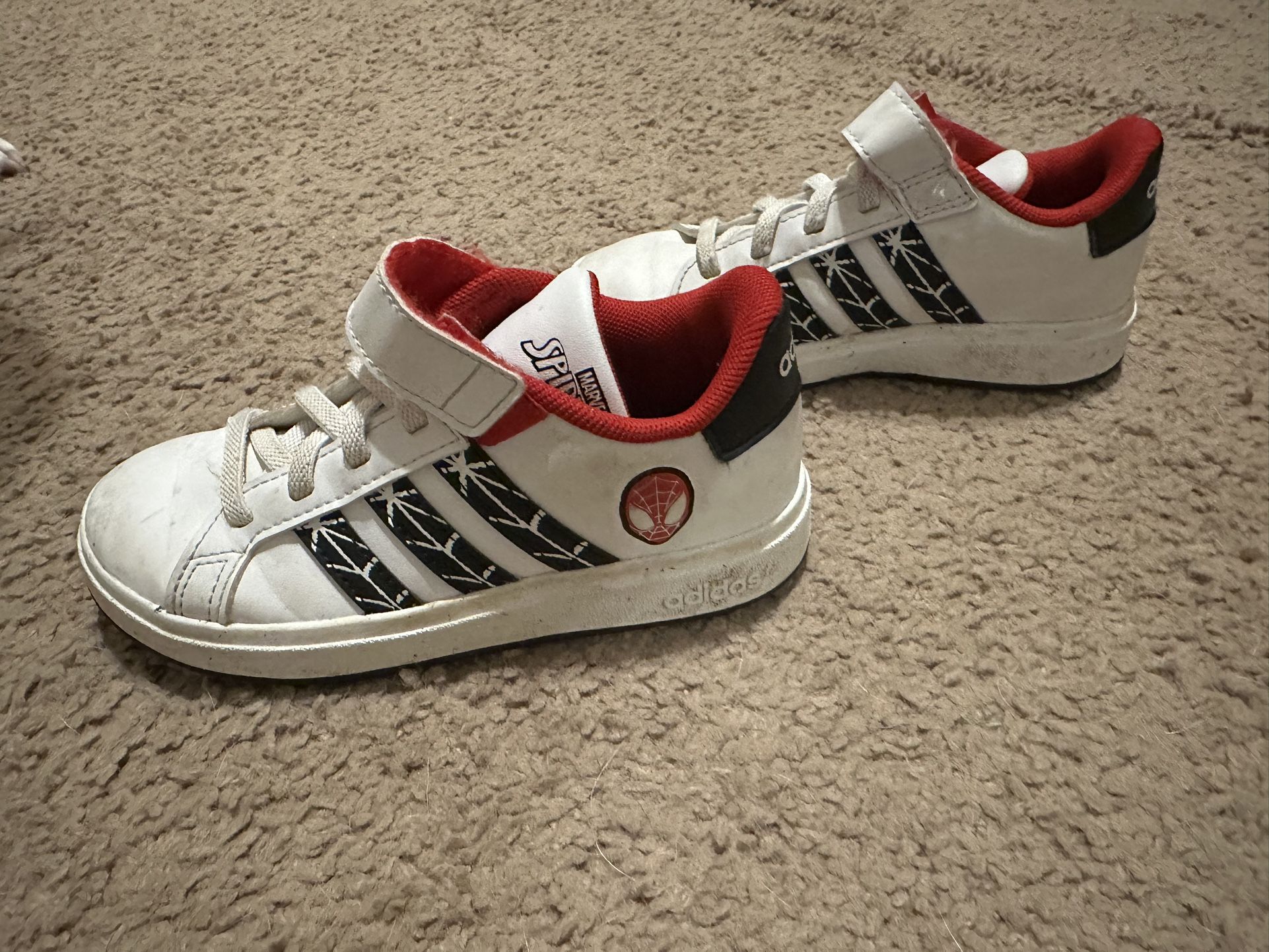 Spider-Man Adidas shoes like new, worn a hand full of times. Great condition. Size 11 toddler.