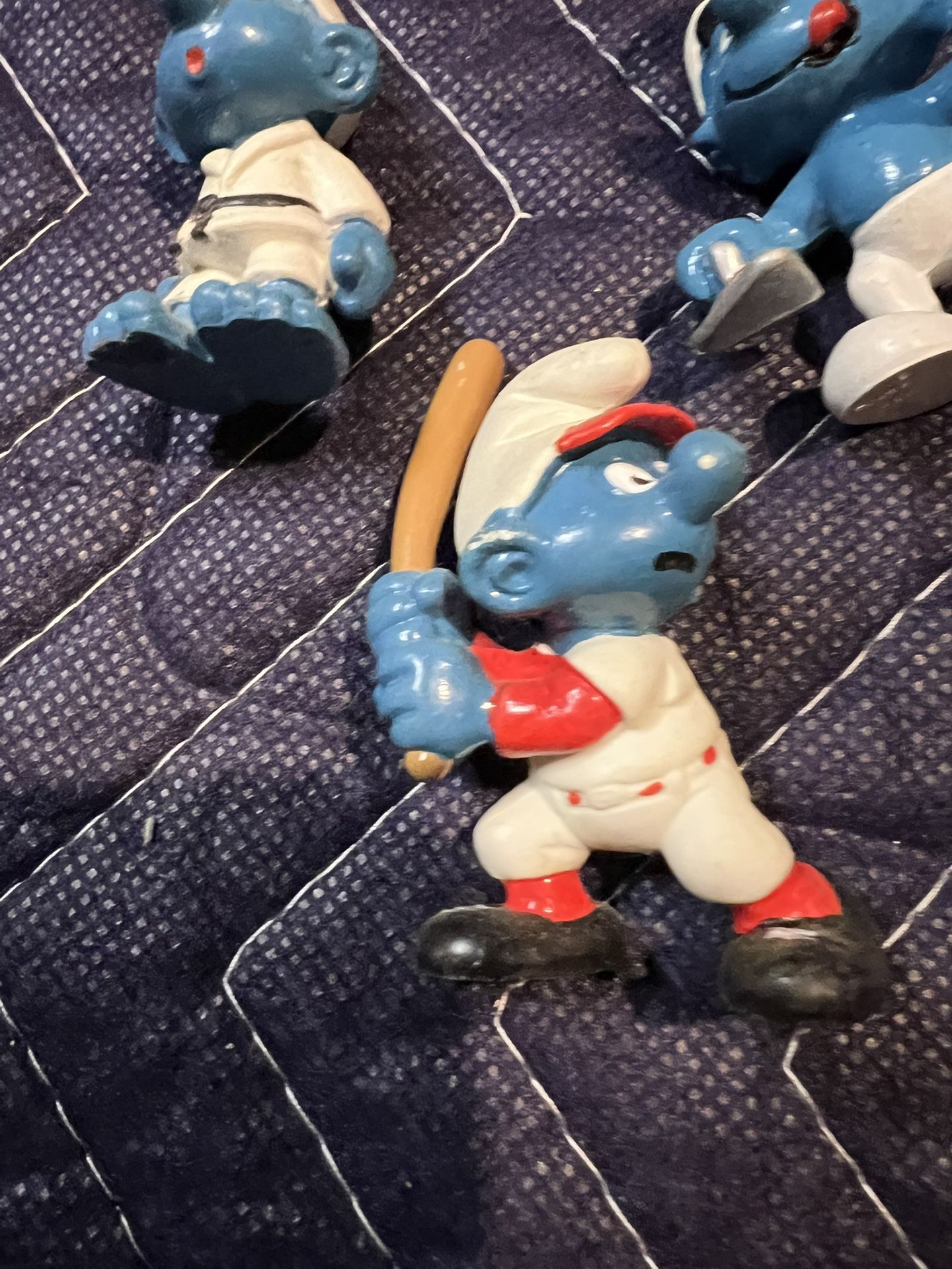 Up for sale is a vintage lot of 3 original Smurf figurines by Schleich (Peyo). Includes: • Karate Smurf • Baseball Batter Smurf • Skier Smurf These are authentic 1980s figures marked Peyo / Schleich (see photos). Made in West Germany. Condition: • No cracks or breaks • Minor paint wear consistent with age • Bright original colors • Display-ready condition Great addition for Smurf collectors or 80s nostalgia displays. Ships carefully packed.
