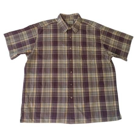 L.L. Bean Cotton OXQ53 Purple Tan Plaid Button Front Short Sleeve Casual Shirt Men's XL