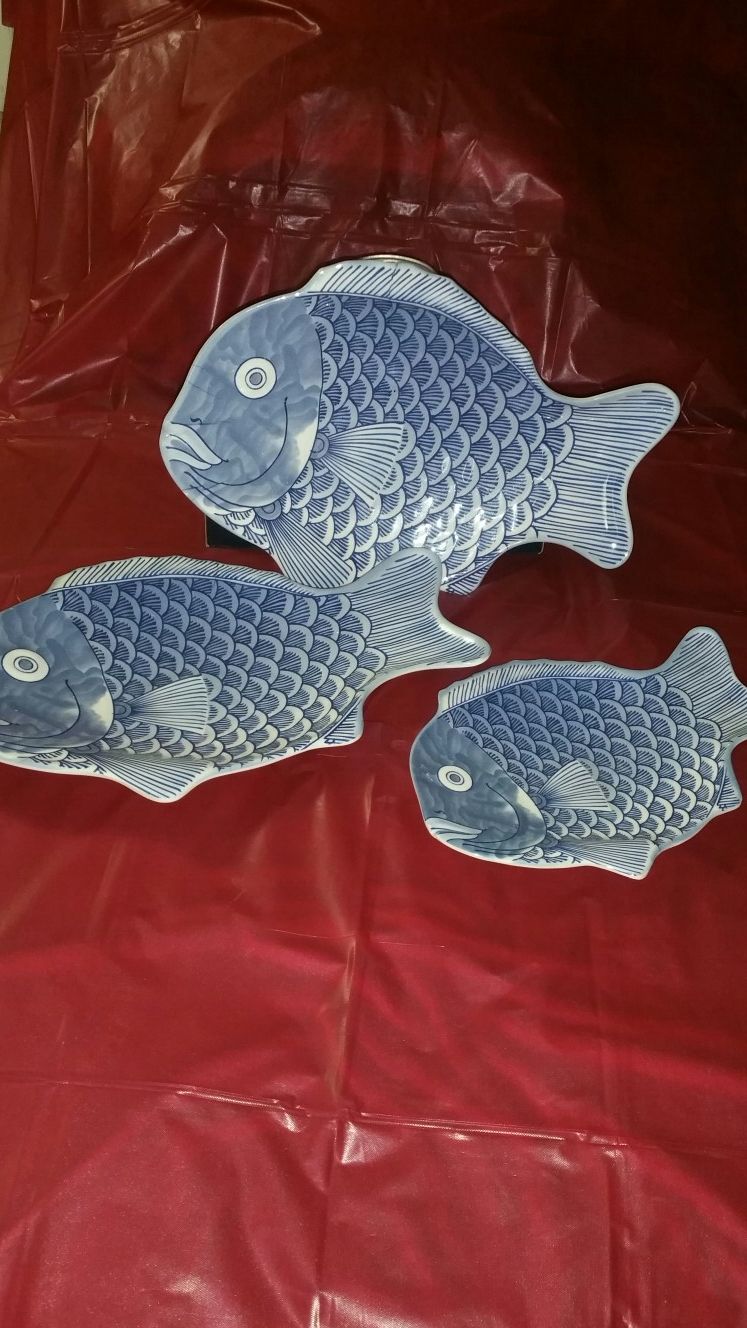 3 piece heavy melamine fish platter set to large one small. Please see my other items