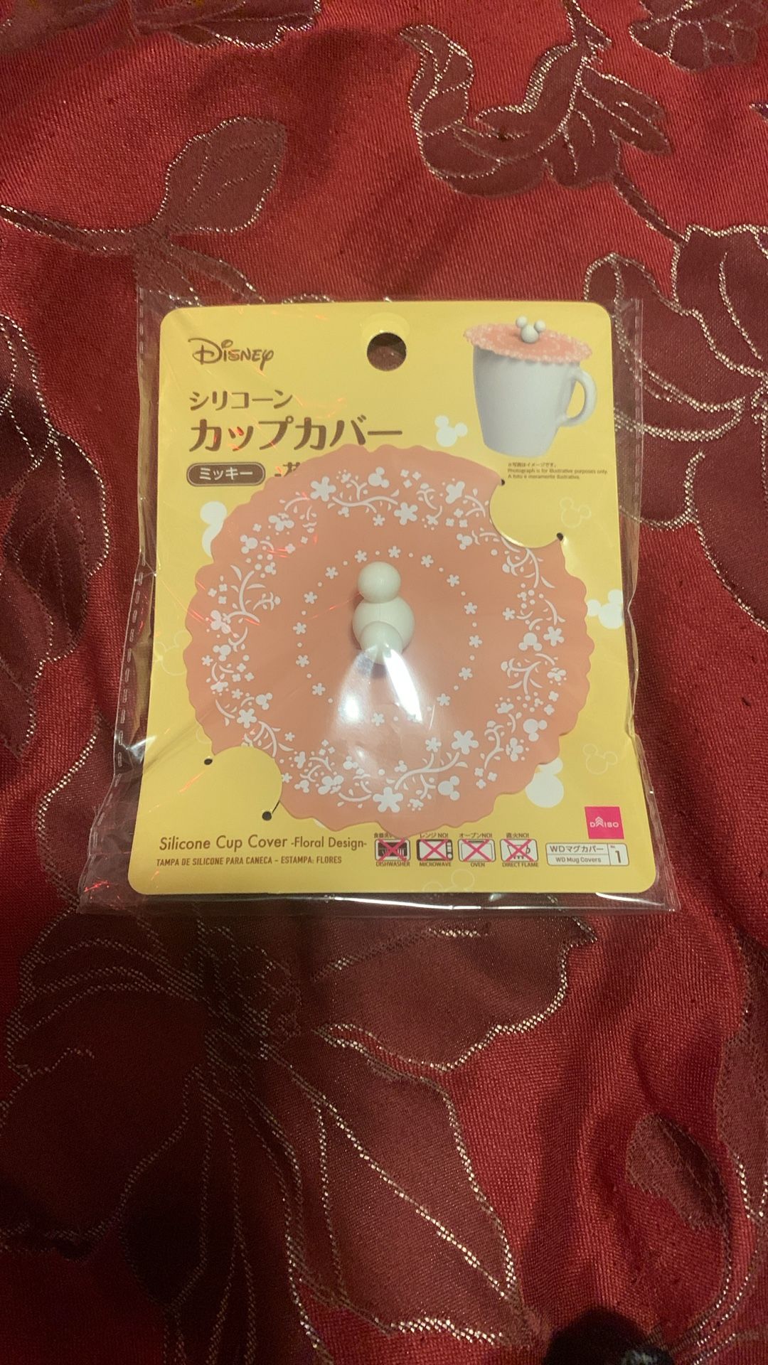 Disney Charming Disney cup cover with floral pattern. Features a peach hue and Mickey Mouse handle.