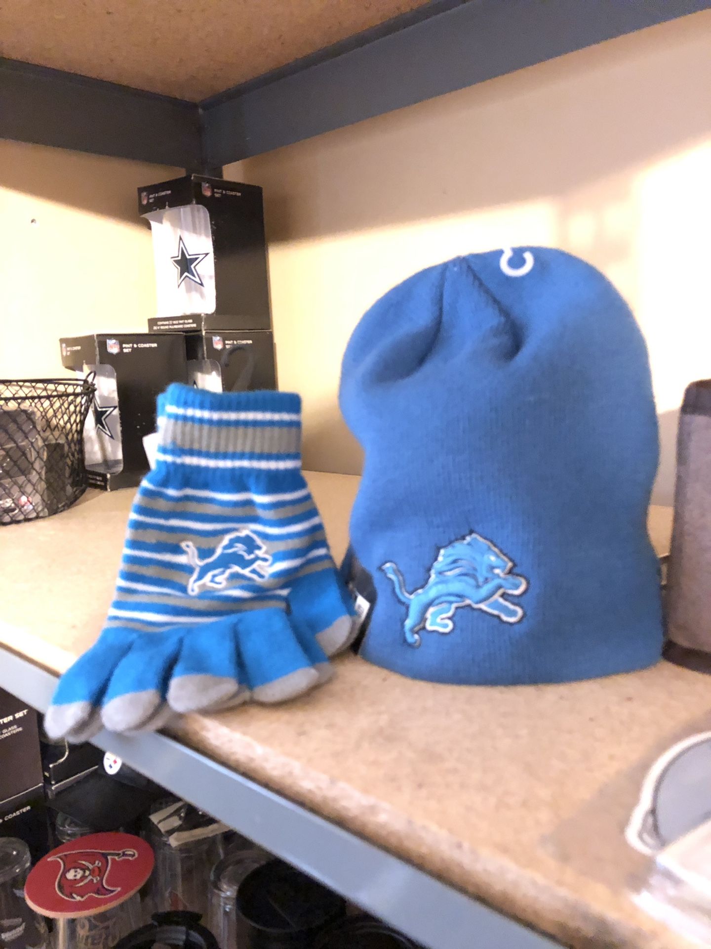 Detroit Lions beanie and gloves