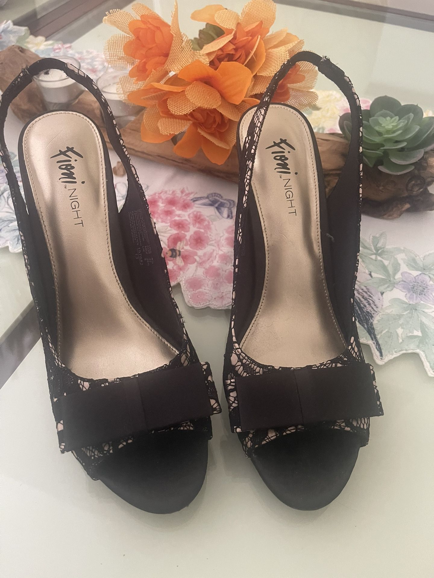 evening shoes, black, satin with embroidery #9.5 Made Fioni Night Like new