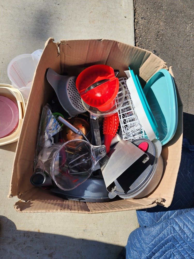 BOX FULL OF KITCHEN UTENSILS, TOOLS AND ITEM, FROM PETS FREE HOME