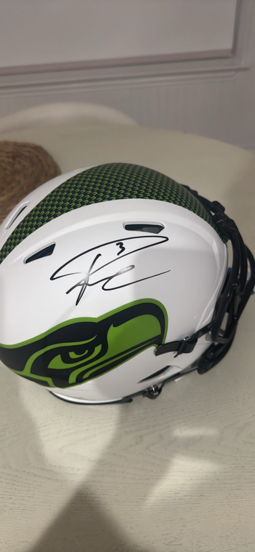 Perfect condition Russell Wilson Seahawks helmet signed at Mill Creek Sports store in Bothell Wa on a request wasn’t able to make it to the even.