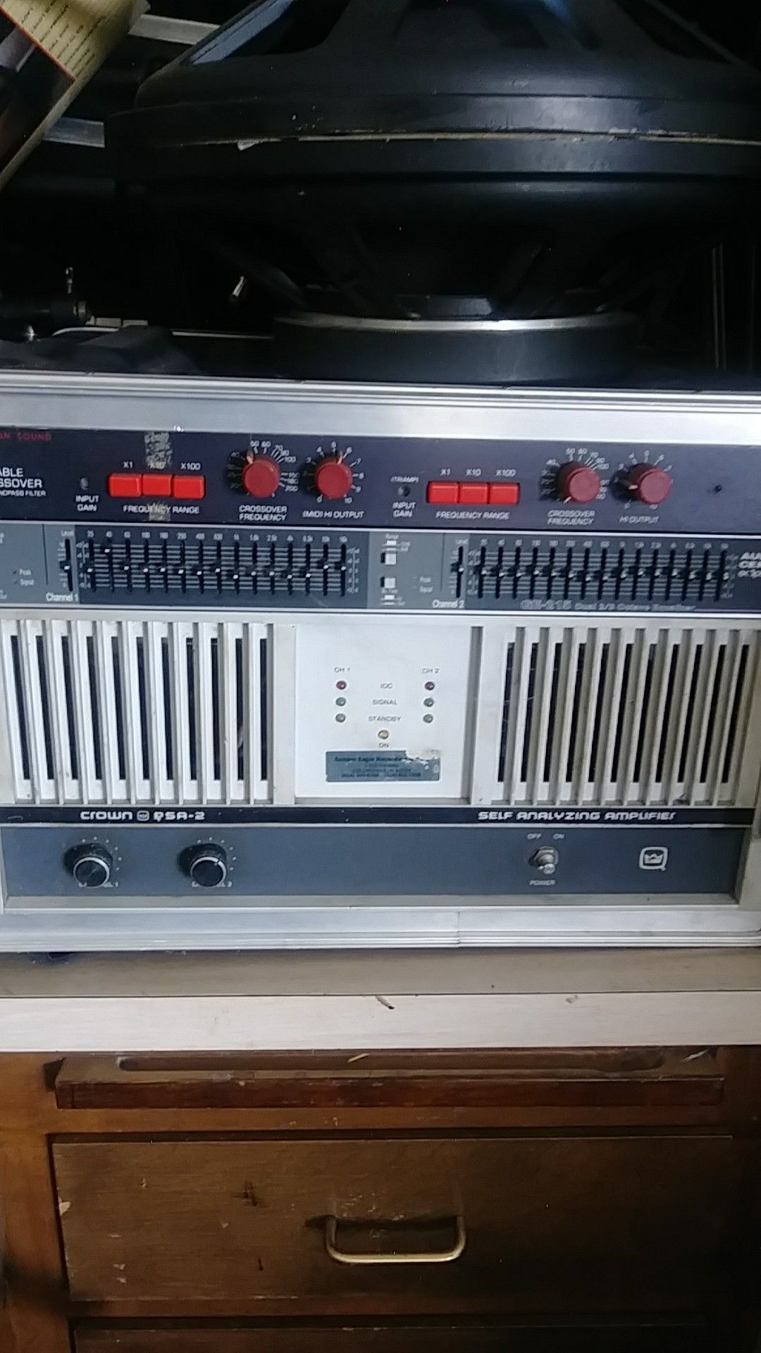 Assortment of music amps tunable crossover and self analyzing amps and speakers