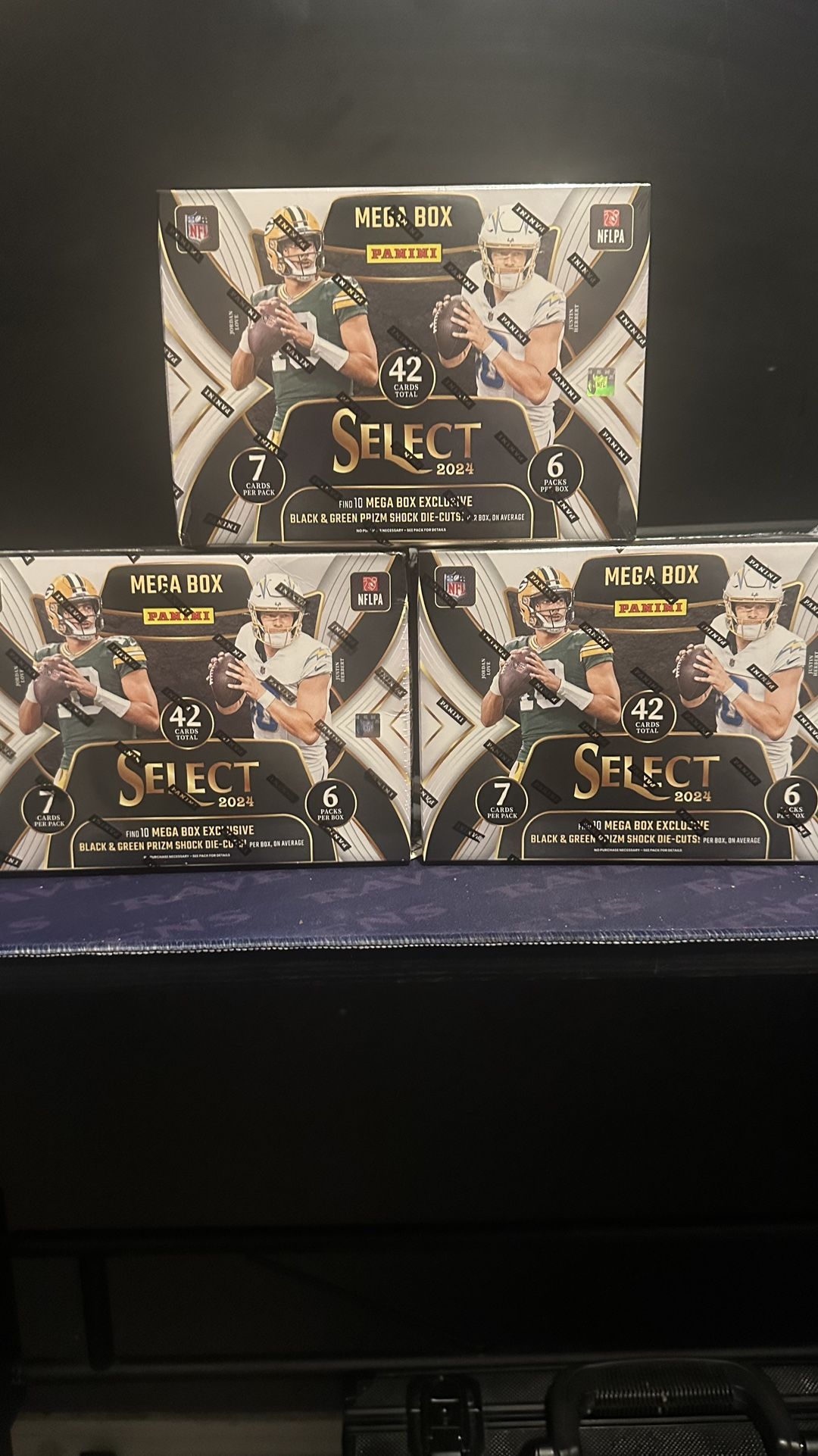 The all new 2024 Panini Select Football Mega Boxes. All sealed and ready to rip. Selling the lot as $240 for all 3 or $80 a mega box!