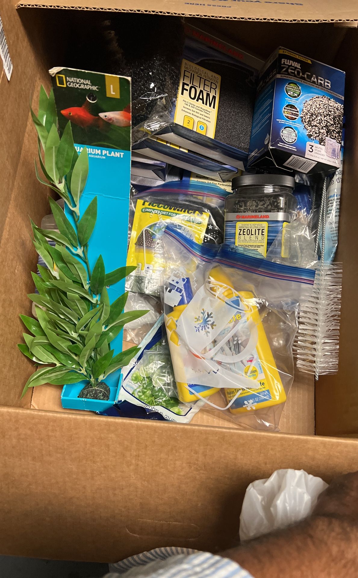 I have three different size tube brushes Aquasafe 16.9 fluid ounces Easy balance 8.45 fluid ounces Four different artificial plants Tetra tropical flakes 2.2 ounces Flu zeo carb three packs Zio light blend 12 ounces Clinoptilolite zeolite ammonia neutralizing crystals 25 ounces 4 Top fan large media filter bags, 4 inch width times 12 inch height Play go wafers 2.5 ounces One polishing filter pad fits C series and magna flow 160 and 220 canister 3 pack Fluval nitrate Biological and mechanical filtration filter foam contains two right size S fit C series and magna flow 160 and 220 canister filter chemical filtration, premium charcoal activated, carbon bags fits all C series and magna, flow canister filters Mechanical filtration polishing filter pads, fit C series and magna flow 160 and 220 canister filters contains two Mechanical filtration, polishing filter pads, fit C series and magna flow 360 canister filters contains two pads