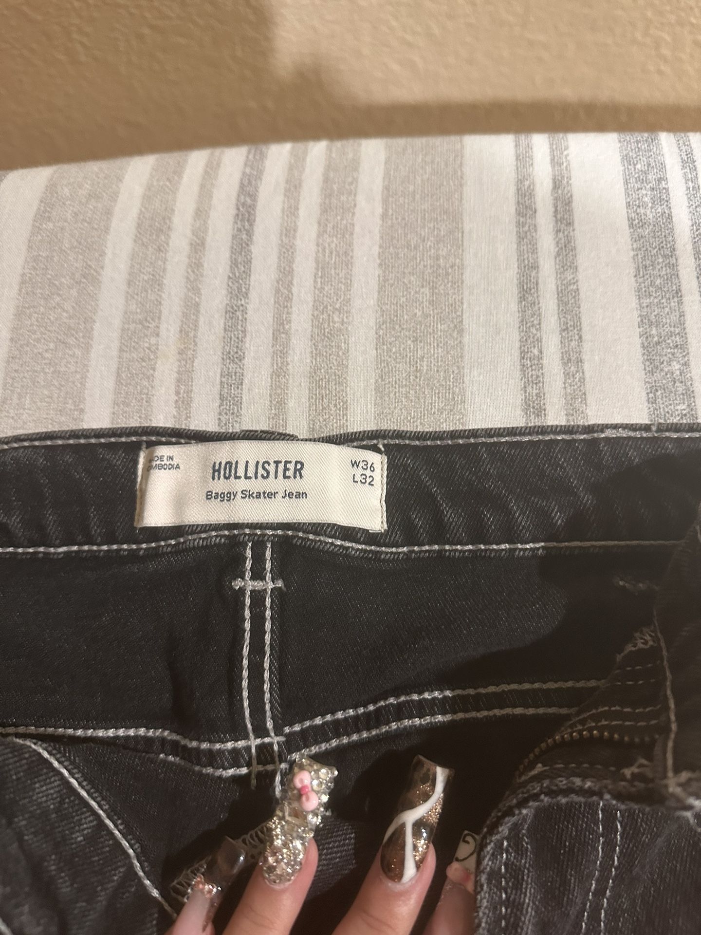Hollister jeans never worn, size w-36 L-32, snake print on the back pocket.