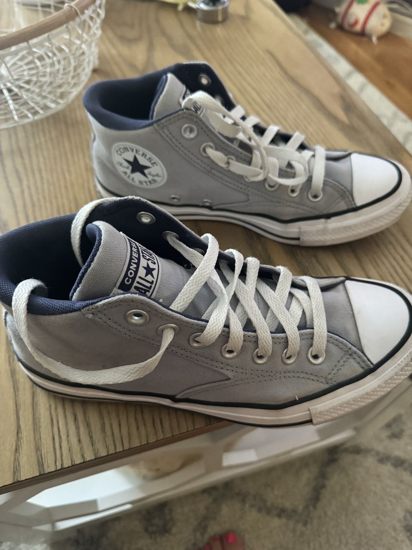 Lt blue converse women’s size 9 men’s 7. $20 worn 2-3 times. Blue boots brand new $15 Reebok tennis shoes worn once women’s size 10 $15
