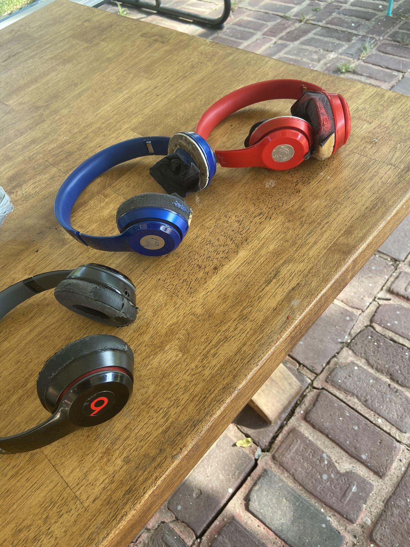 3. Sets of beats ear muffs are torn they need to get replaced you can have them as is .. you can fix them that’s y I am selling so cheap.. don’t message me if u are not interested.. serious buyers only ..