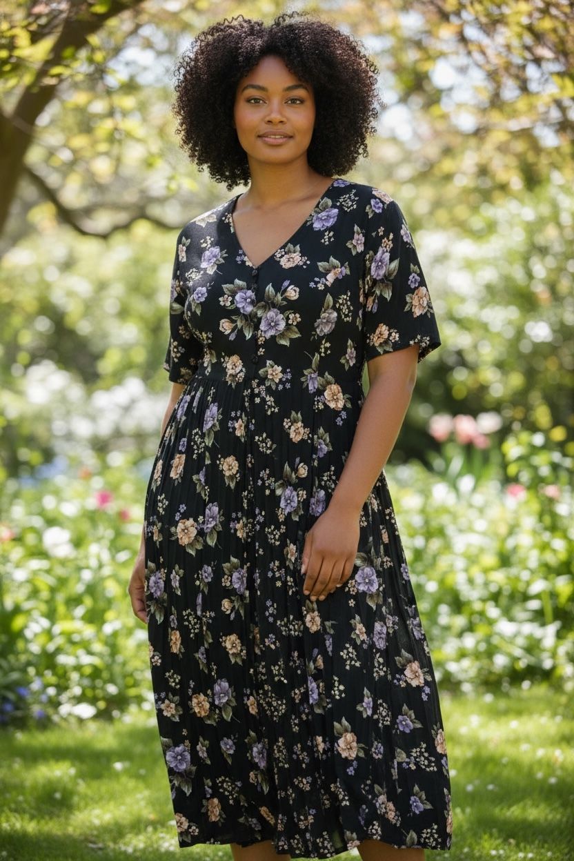 Bentley Plus Size 20W Floral Tunic Dress Black Button Front Rayon