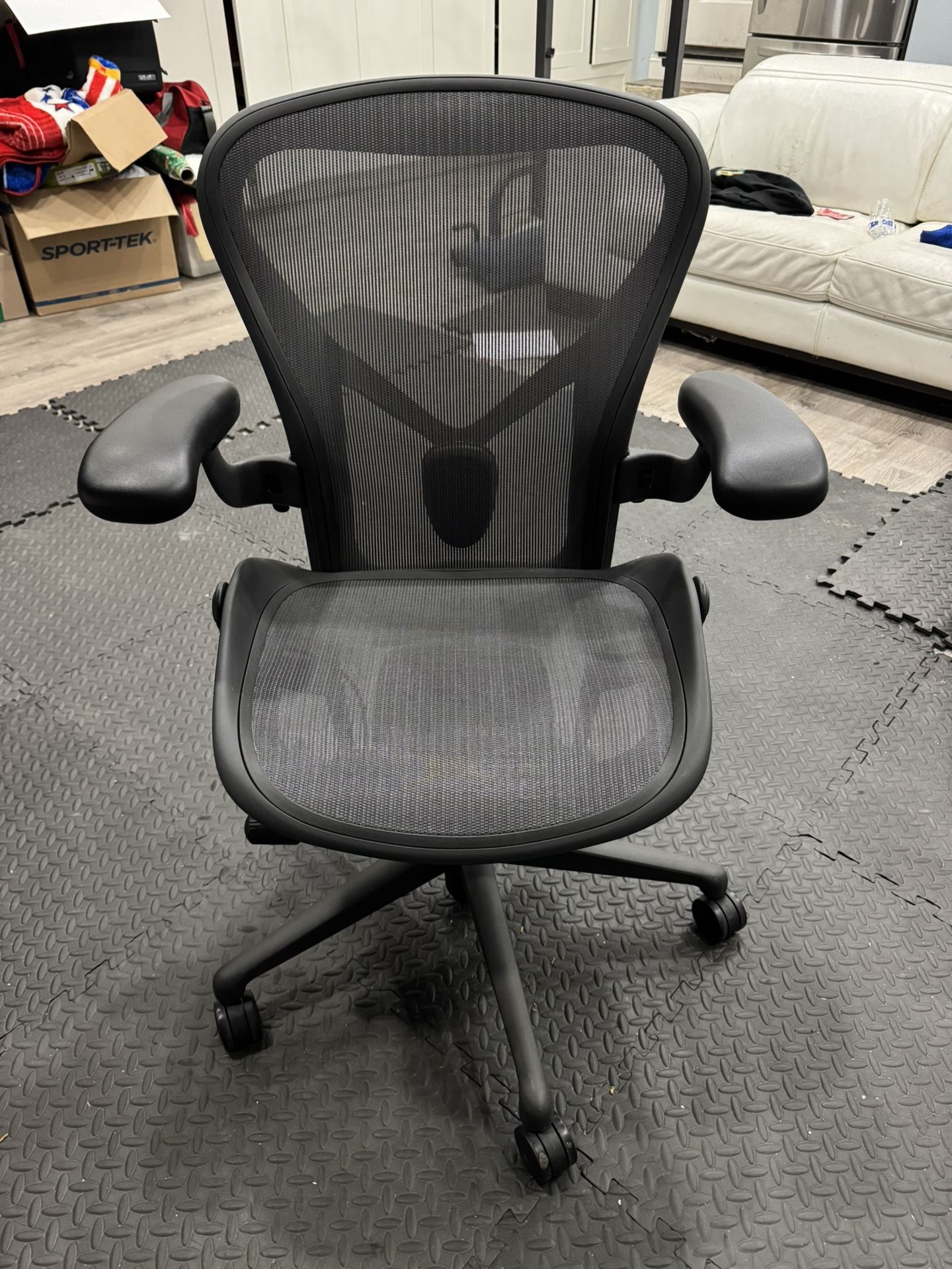 Herman Miller Aeron Remastered chair in like-new condition. - Adjustable seat height and arm rests. - Lumbar support - Size B Chair