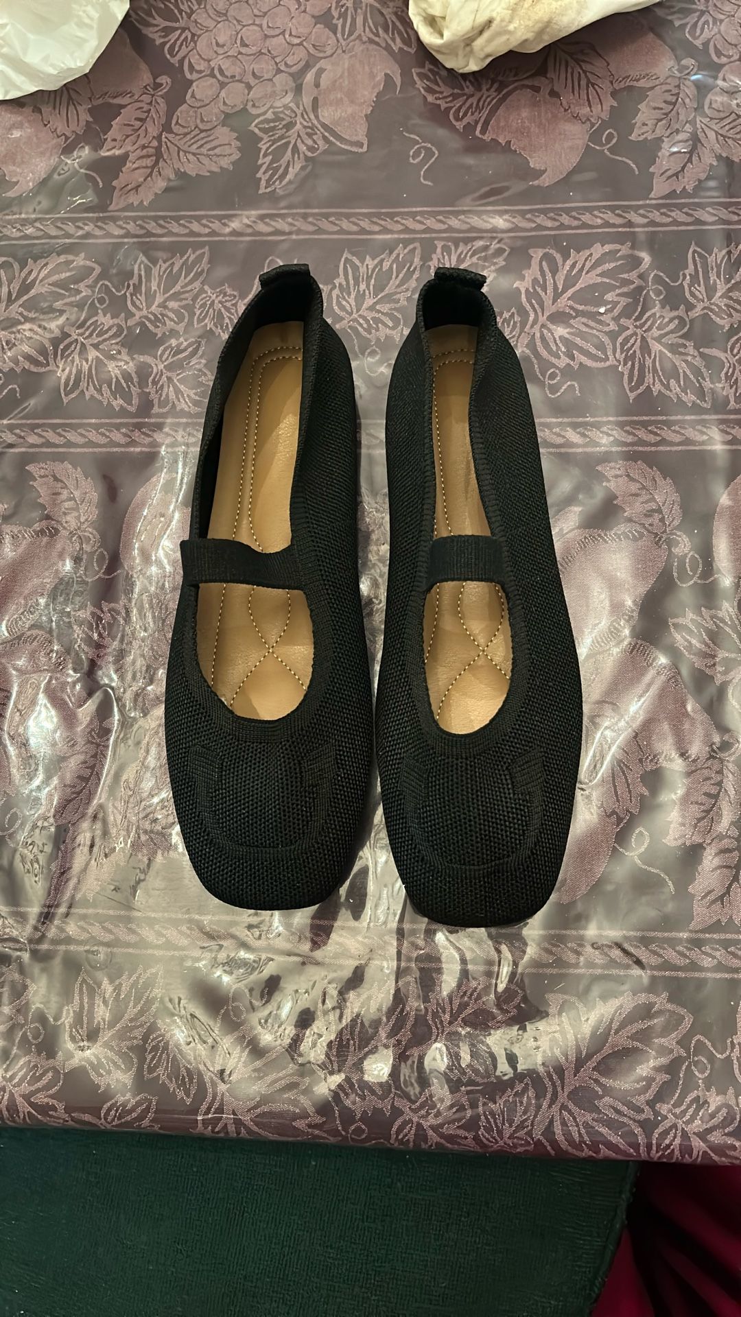 Black cloth slipper shoes Vinyl soles for indoor/outdoor Size 43 medium brown soles Size 42 black soles $5 per pair NEW in package East Sacramento