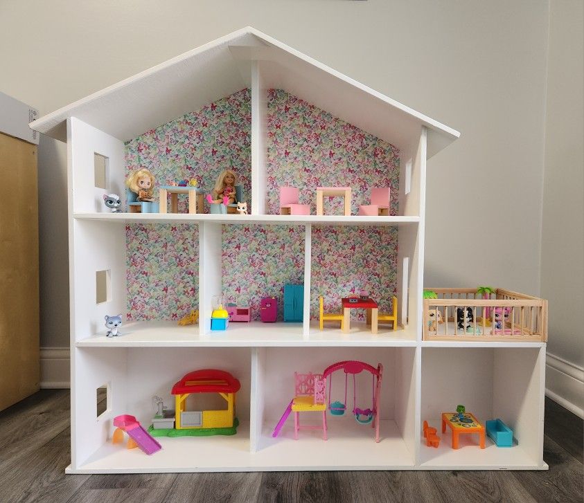 Wooden doll house H 36" x W 35" x D 10" White All furniture, 2 dolls, and accessories included (just like on pictures) Very good condition.