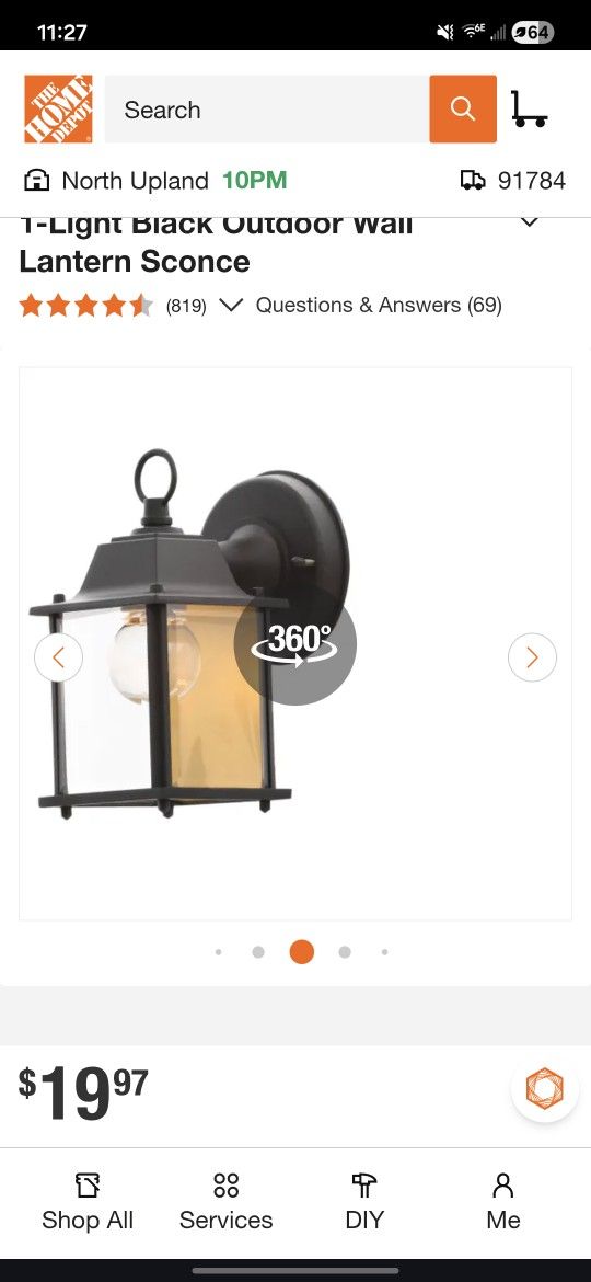 Brand new in box - 2 available The Hampton Bay Wall-Mount 1-Light Outdoor Wall Lantern has a classic square shape and clear, beveled-glass panels in a black-finish housing. It is easy to install and recommended for side and rear entranceways. Uses one 60-Watt maximum bulb (not included). Made of cast aluminum Clear, beveled-glass panels complement the black finish Traditional open-bottom lantern design with contemporary elements Uses 1-60-Watt maximum bulb (not included) UL listed for safety