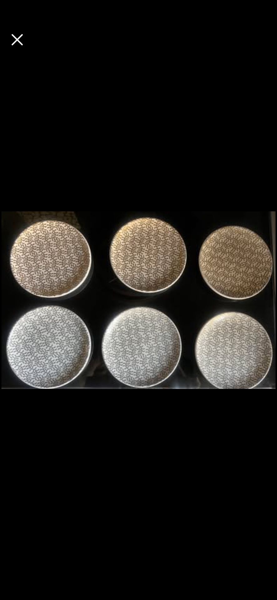 6 ceramic small 6 inch plates. 3 silver and 3 gold design. Used very gently, in great condition.
