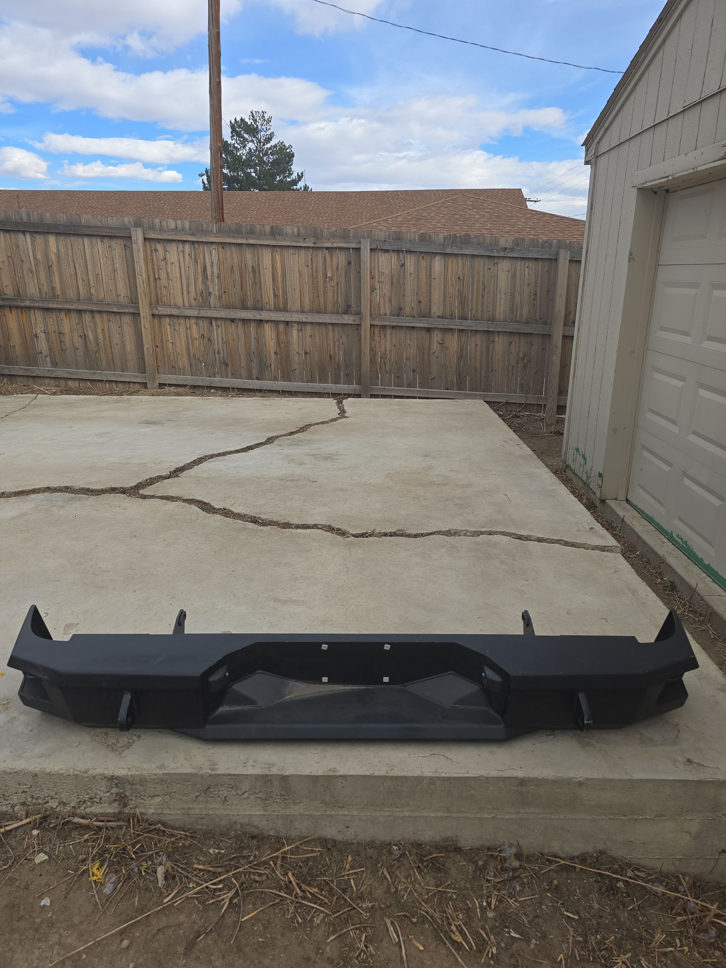 Aftermarket rear bumper for a 2011 Nissan titan or Toyota Tundra i believe...great shape comes with brackets and most of the hardware