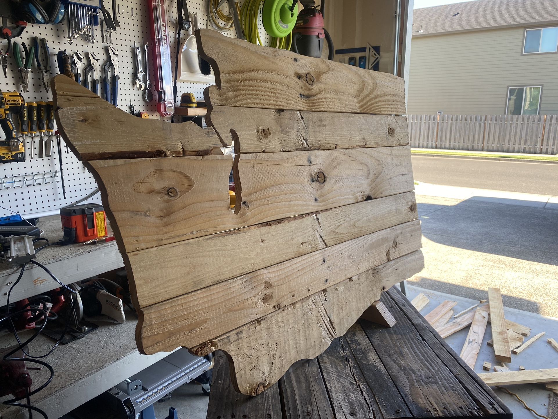 This is a large piece (40” x 26 1/2” ) Made from reclaimed wood Great for the wall inside the home or outside in the garden!