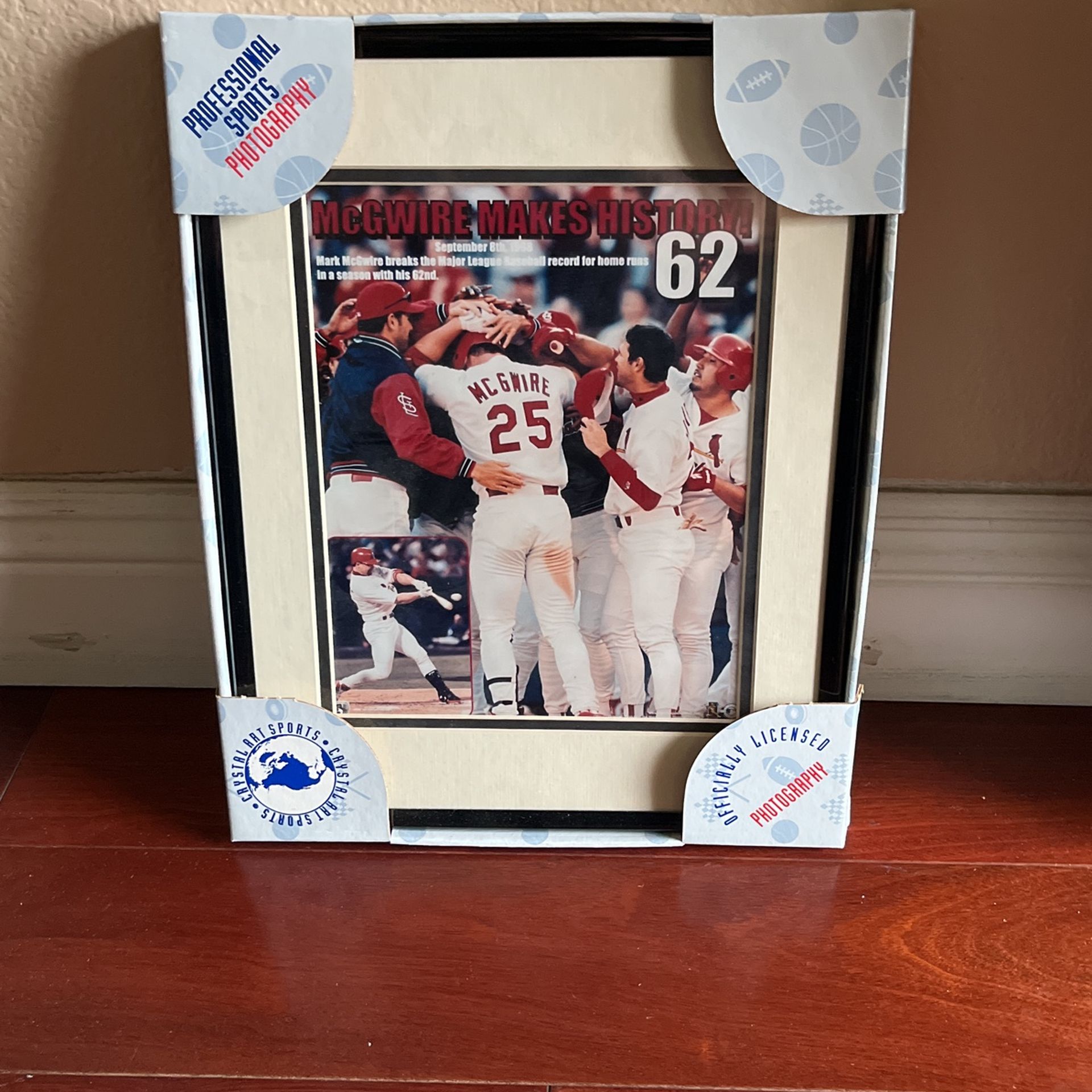 Framed Photograph of Mark McGuire Making History 62 Home Runs (1998). From crystal Art Sports Collection. Asking $40.00. Local pickups only.