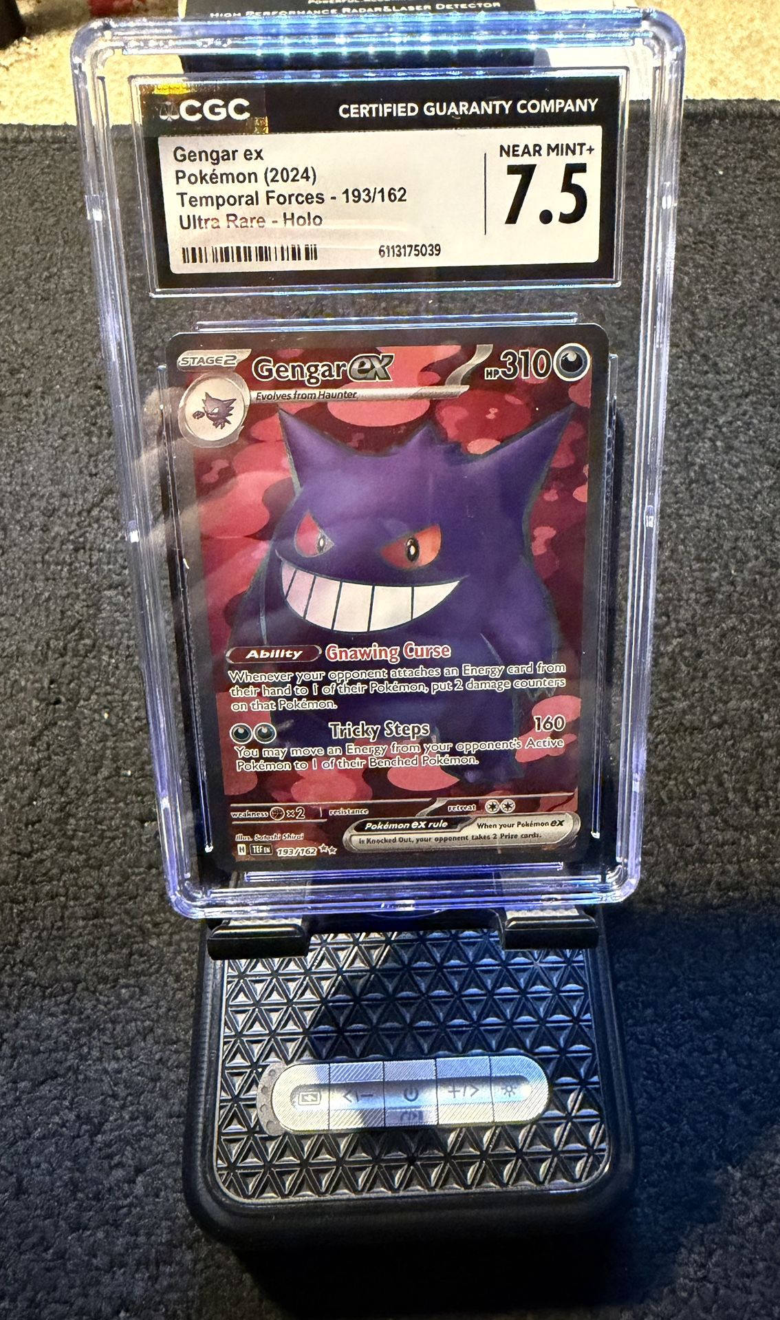 Selling a collector bundle of 3 Pokémon cards — priced for max value, not a giveaway. You get the exact cards pictured. Included in the lot: • CGC 7.5 (Near Mint+) Gengar ex – Temporal Forces 193/162 (Ultra Rare Holo) Slabbed • Dragonite V – 076/078 (Holo) Sleeved + Toploaded • Gyarados ex (Tera) – 225/198 Sleeved + Toploaded All cards are protected and ready to go. No trades. Pickup in Columbia, MD (public meet ups ) If it’s still up, it’s available. Serious buyers only.