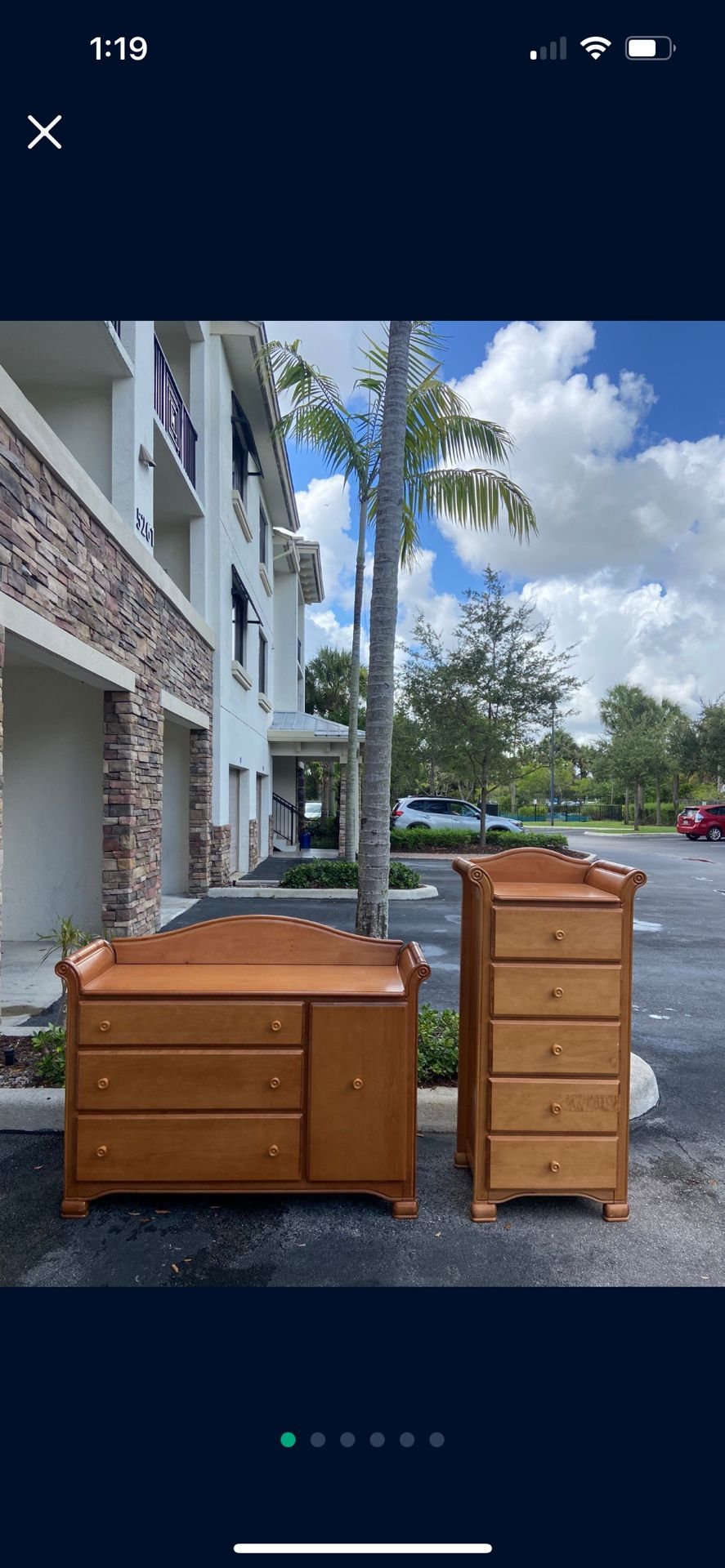 Real wood changing table / dresser plus a tall dresser. Both in excellent condition. Non-smoking home. On second floor with elevator. Must pick up. Measurements: Dresser 54” wide, 18” deep, 37” high Tall dresser 26” wide, 17” deep, 52” high