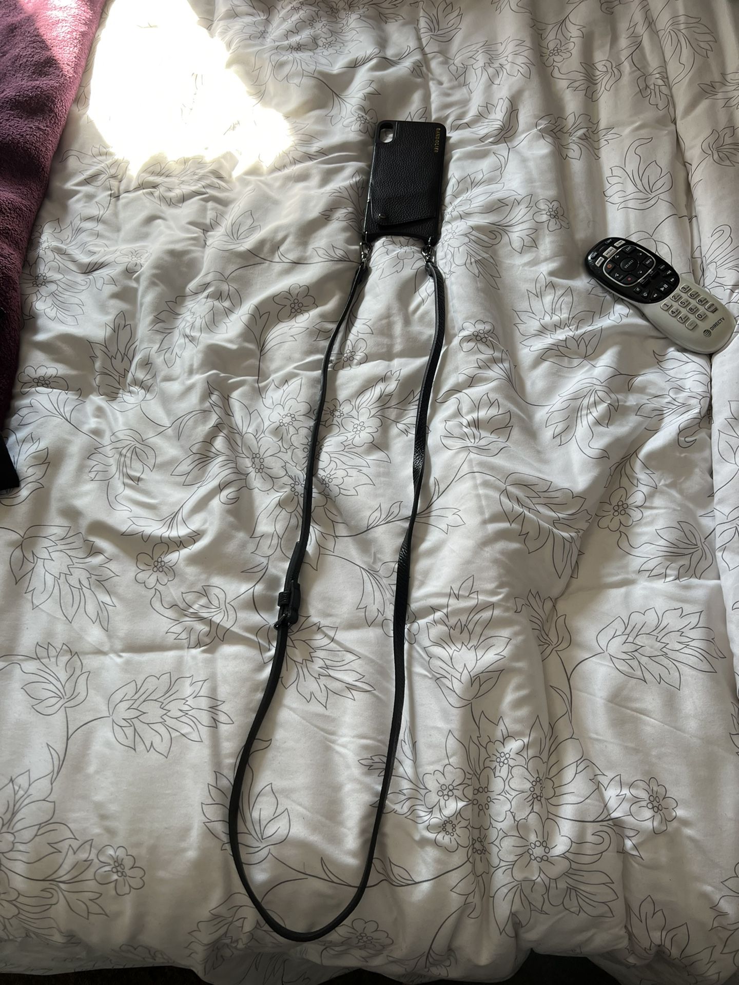 Four iPhone XS Max cases included: -Bandolier shoulder chain case -black/white floral case -pink silicone case -waterproof case