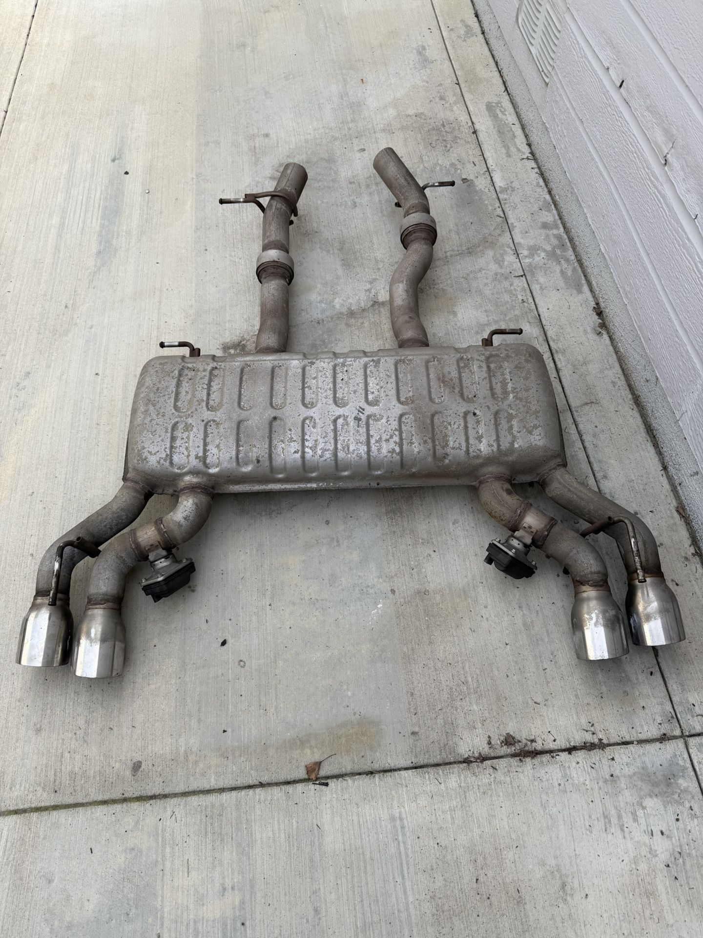 OEM rear muffler/exhaust assembly pulled from a 2019 CTS-V. Includes both exhaust valve actuators and quad tips. No leaks, no dents, normal surface wear only. Perfect for returning car to stock or replacing aftermarket system. Local pickup only.
