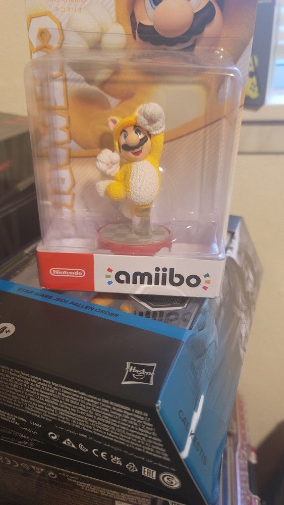 Mario and princess peach cat amiibos.