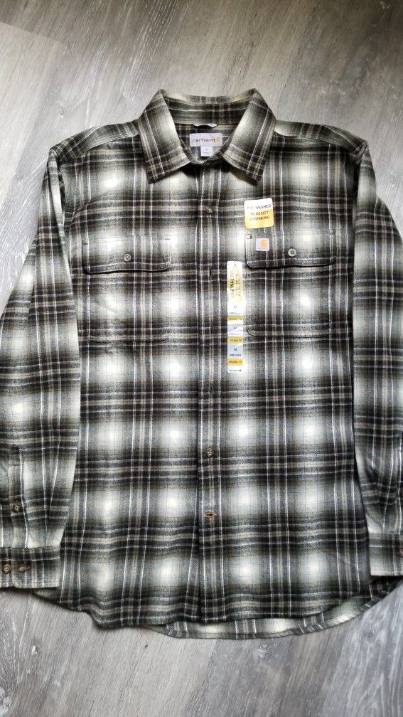 Carhartt button up flannel size medium olive plaid. Brand new with tags $50