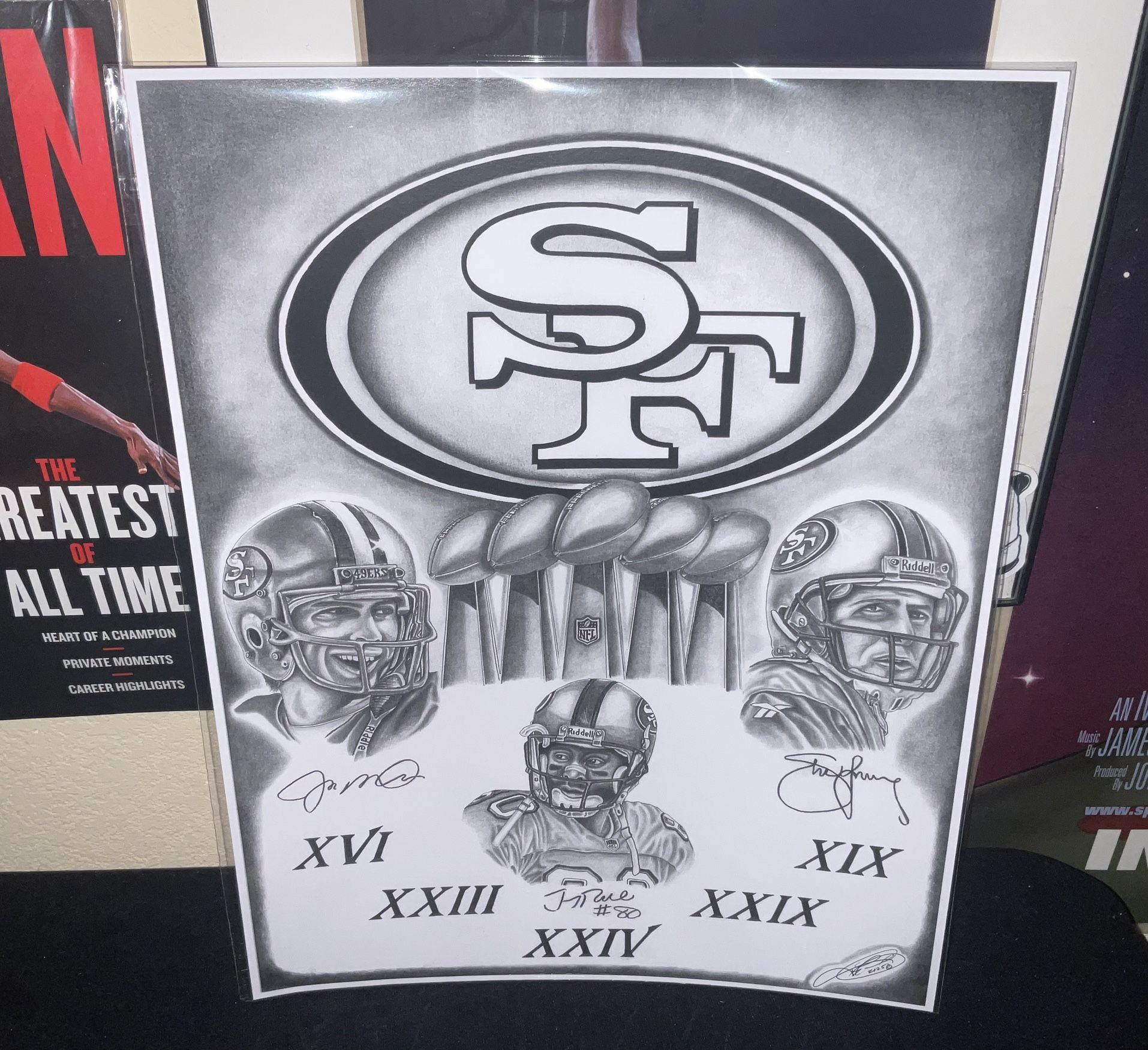 San Francisco 49ers 5 time Super Bowl Champions Vintage Art Print Joe Montana Jerry Rice Steve Young Football Gift 12x16"