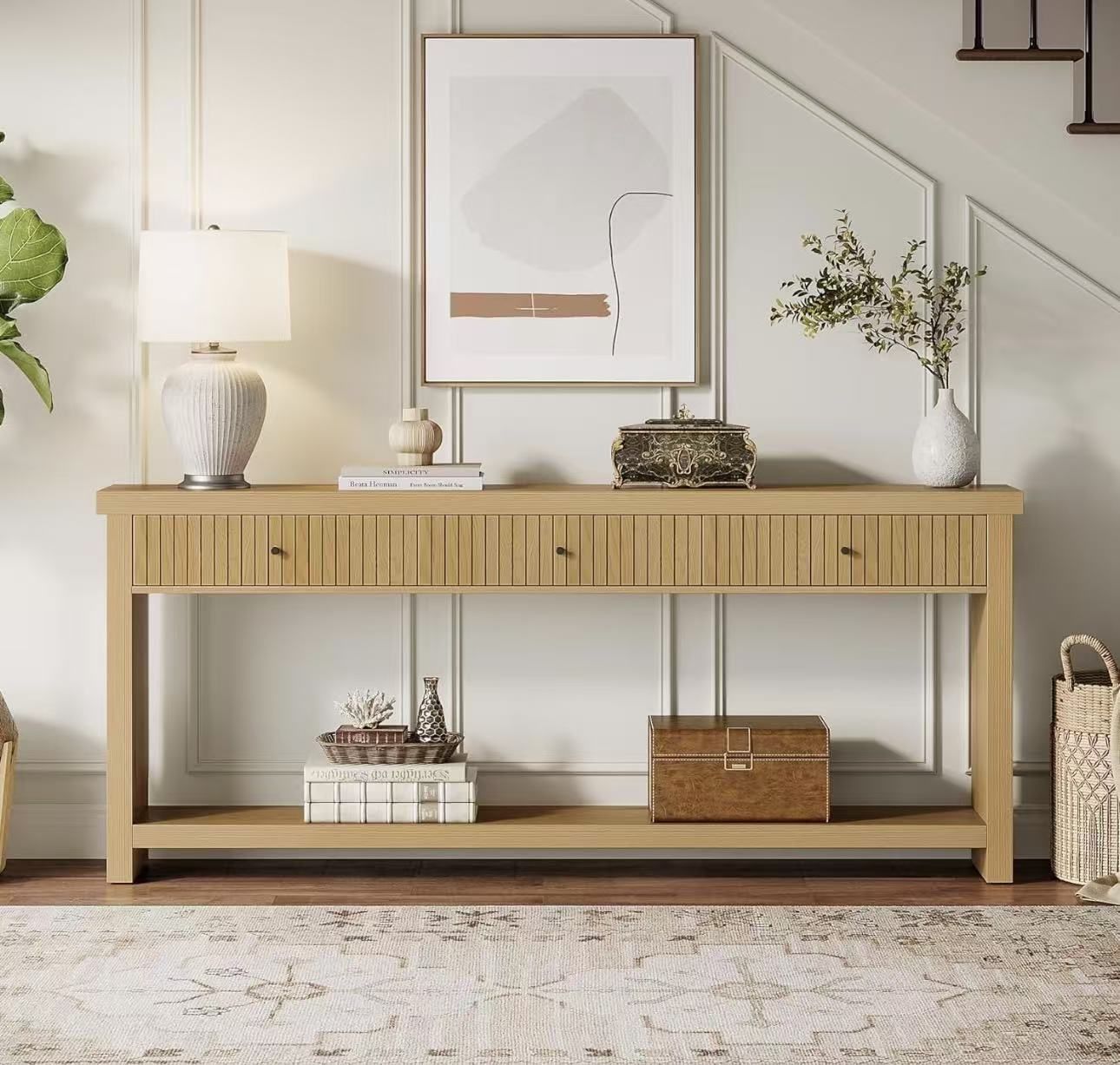 New assembled 70.9 inch Console Table with 3 Drawers, Extra Long Entryway Table, Wood Sofa Table Oak Furniture with Open Storage Shelves Wooden Couch