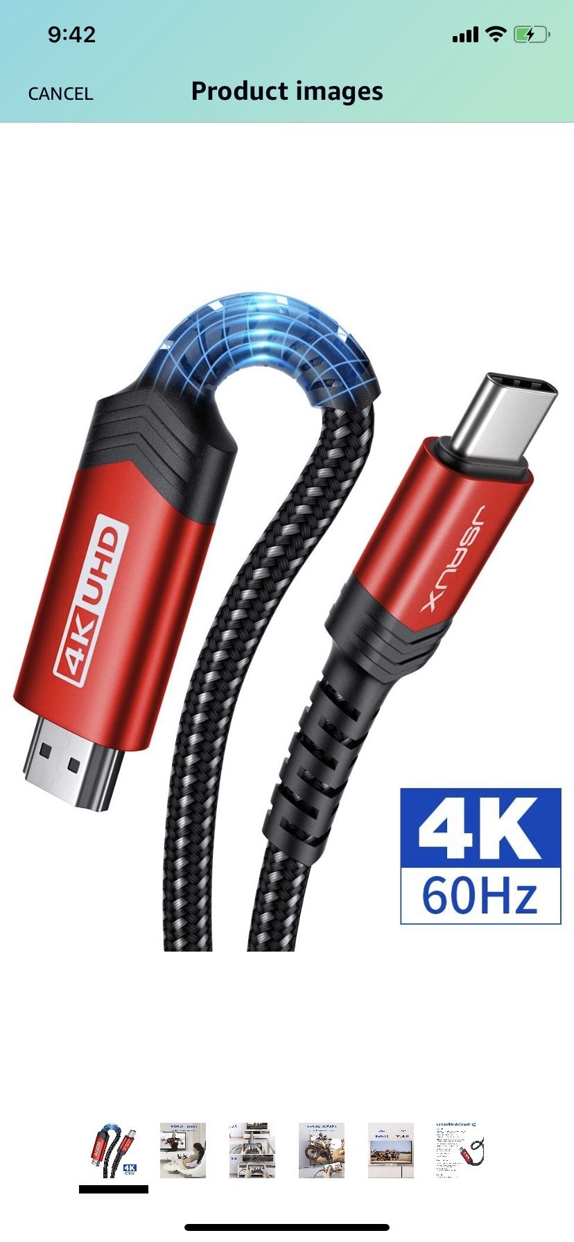 USB C to HDMI 2.0 Cable 10ft, JSAUX 4K@60Hz Type C to HDMI Cord(Thunderbolt 3 Compatible) for MacBook Pro 2018 2017 Air iPad Pro, Samsung Galaxy S20