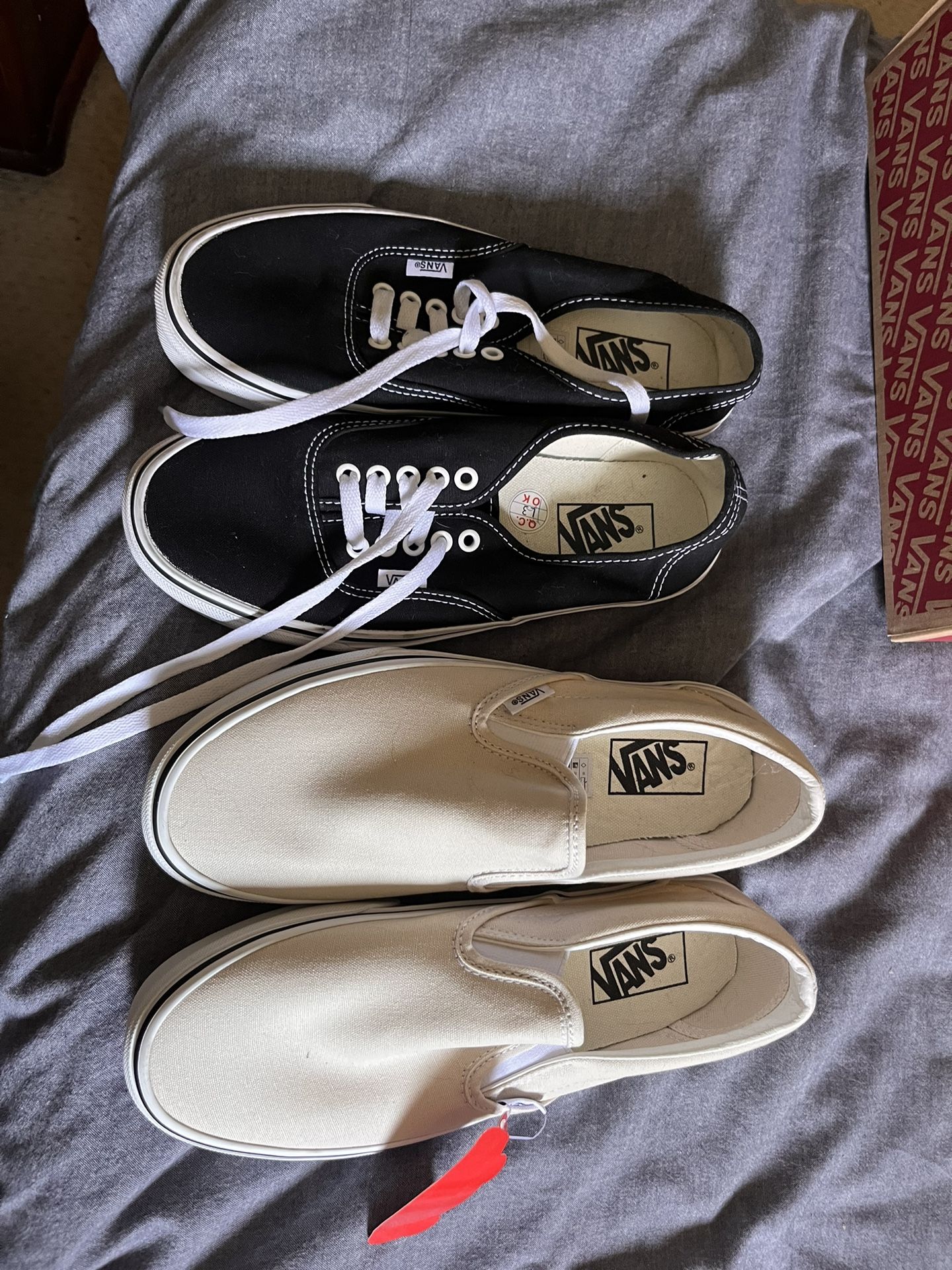 Black womens vans size 9 Beige slip ons size 9.5 womens $40 each
