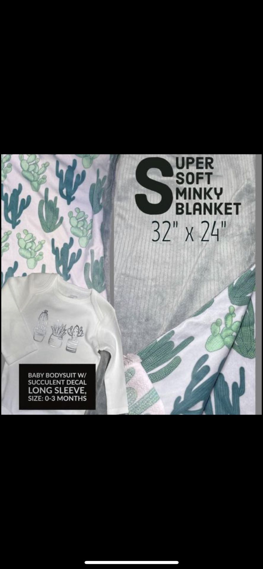 #babyshower gift, handmade minky blanket with brand new onesie Minky is soft and plush with popular cactus succulent print