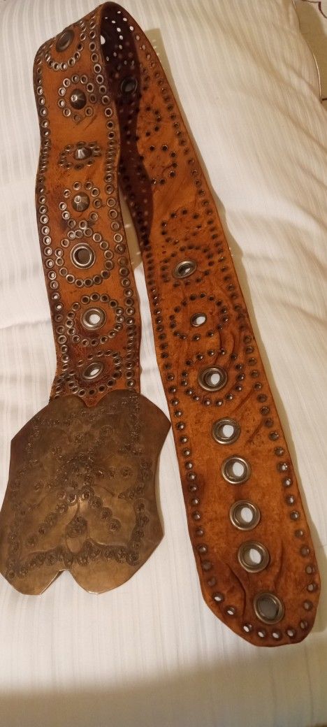 Handmade Brass And Leather Belt 34 In Not Including Buckle