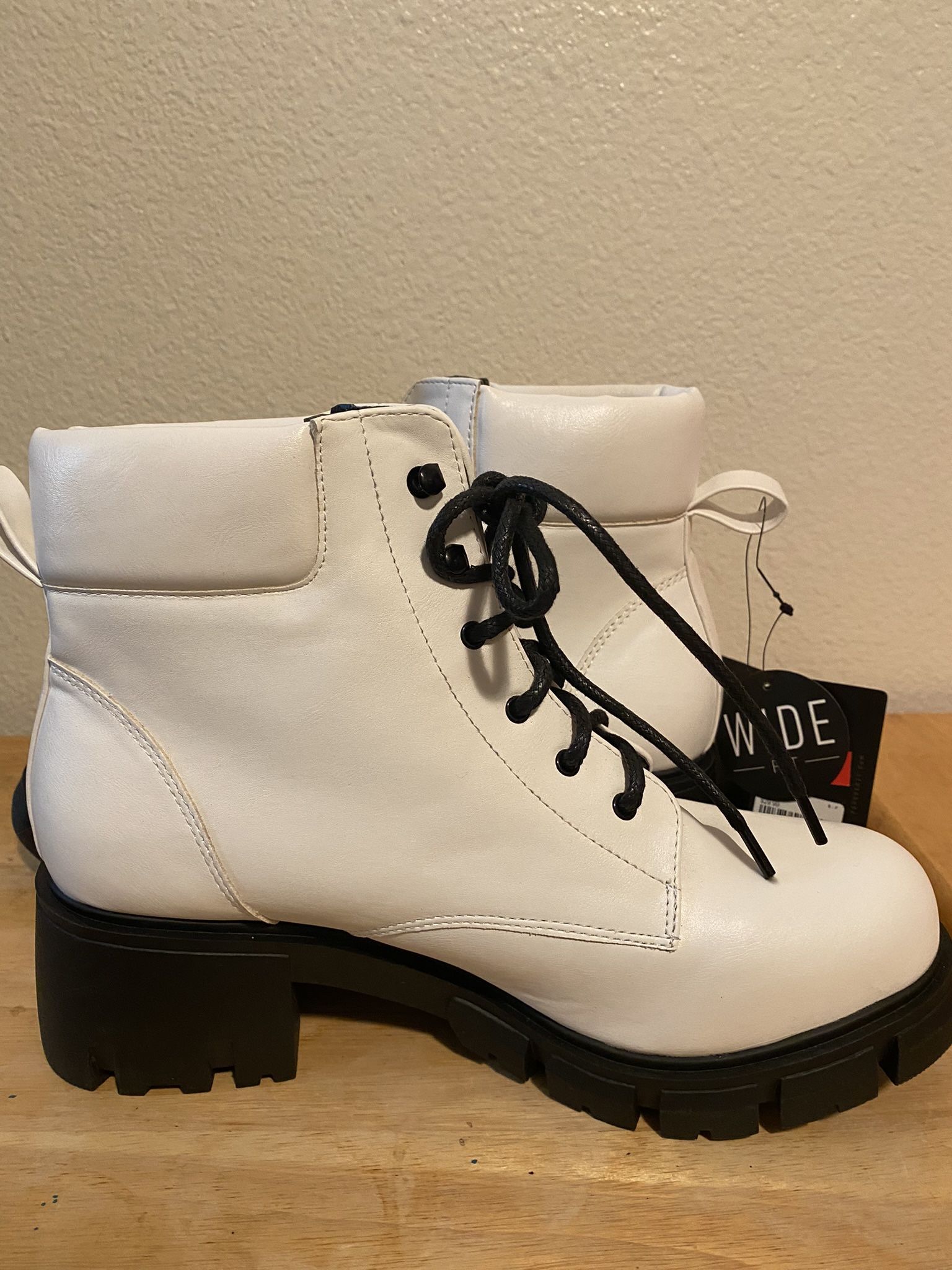 White winter boot, three inch, never worn, brand new fits size 9, wide fit