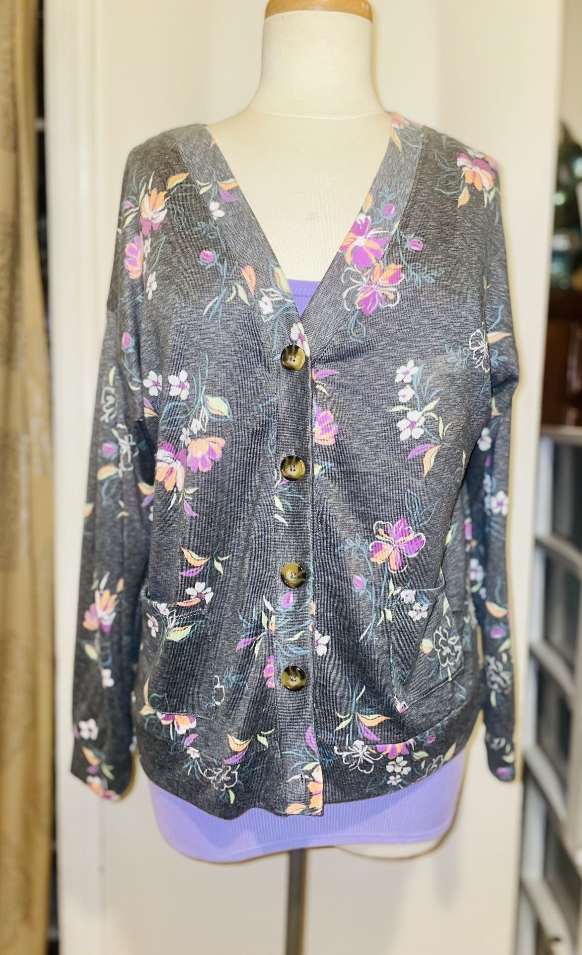 Super cute long sleeve sweater set with lavender cami underneath. Both new. sweater is made by brand Joyspun size small and cami is made by No Boundaries size XS. Please see all photos for more details or message me with any questions thanks!